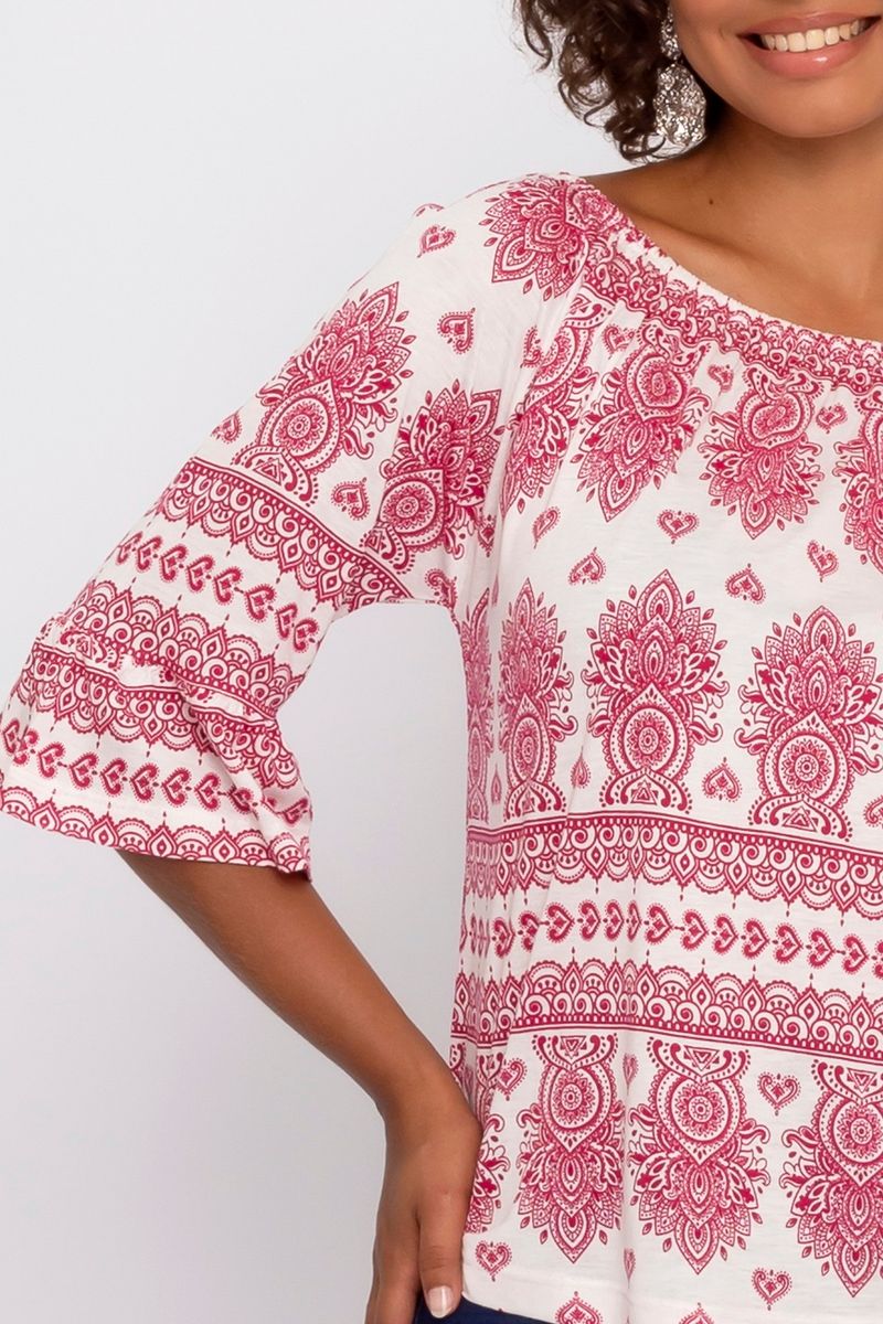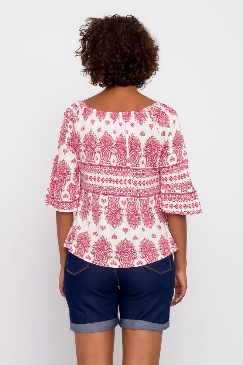 Blusa Ciganinha Feminina com Estampa Paisley Vermelho e Branco