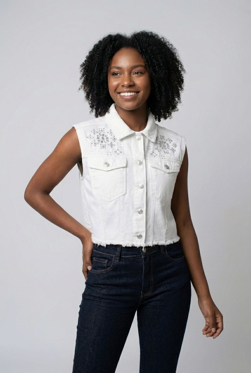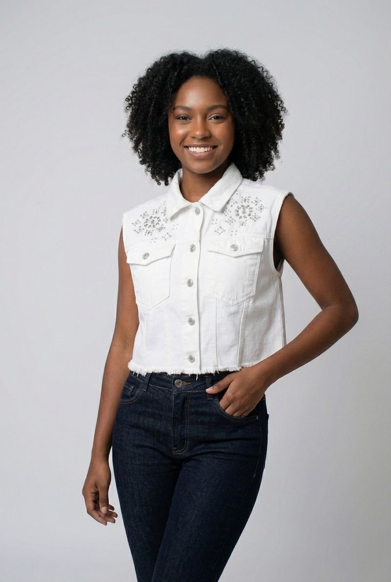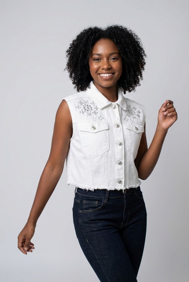 VestuárioOfertasFemininoFemininoBlusas e CamisetasColete fem aj 4615201 srj bord.off off white
