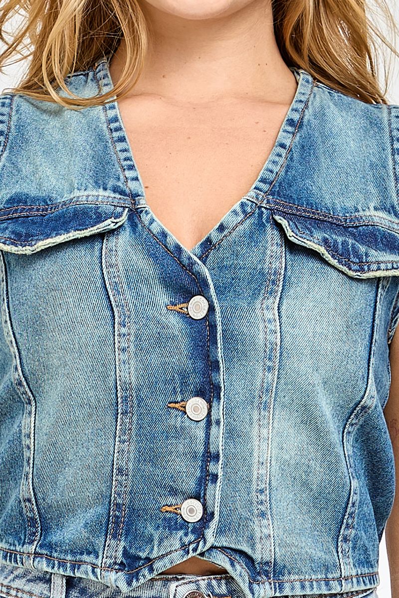 Eleve seu estilo com o Colete Jeans Feminino Caedu. Confeccionado em denim 100% algodão, este colete de lavagem azul médio com botões frontais é a peça chave para um visual moderno e despojado. Perfeito para adicionar um toque de moda e personalidade, garantindo conforto e durabilidade. Uma roupa essencial para quem busca versatilidade e bom preço.