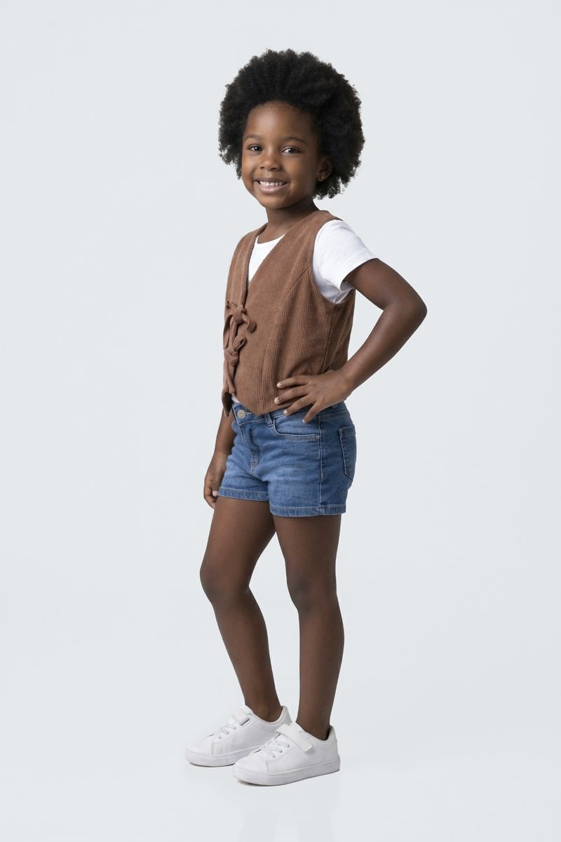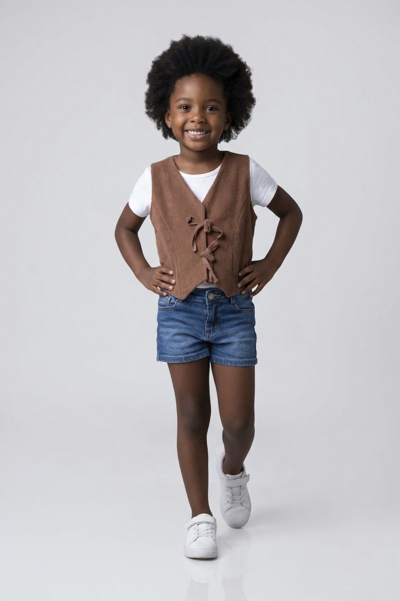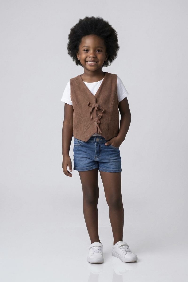 O Colete Infantil Veludo Cotelê Marrom Caedu é a escolha perfeita para adicionar charme e conforto ao guarda-roupa dos pequenos. Com sua textura única e amarração frontal decorativa, proporciona um visual moderno e aconchegante. Ideal para a moda infantil!
