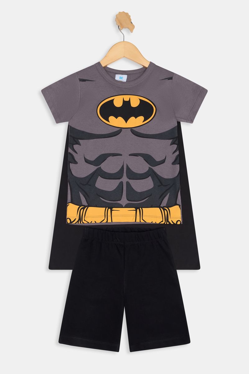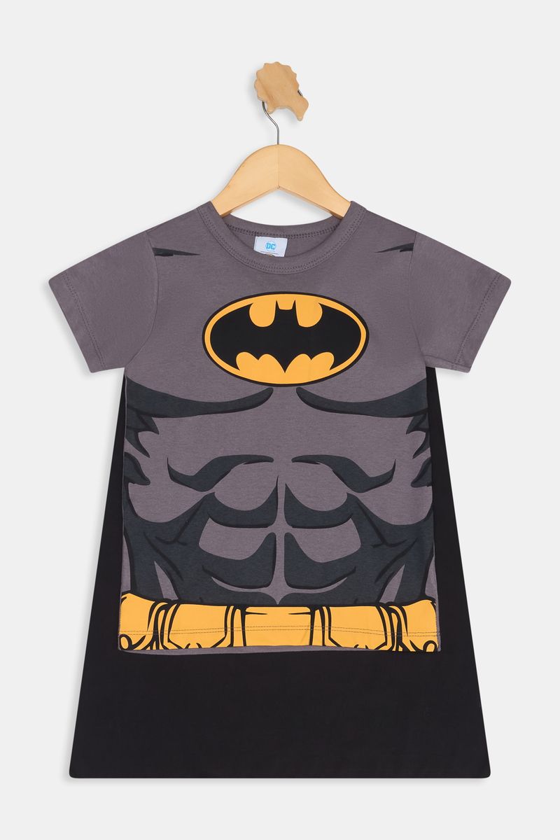 O Conjunto Fantasia Batman Caedu, em 100% algodão de meia malha, oferece conforto e diversão. Com camiseta estampada do Batman e capa anexa, é a roupa infantil perfeita para o dia a dia do seu pequeno herói.