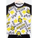 Conjunto Infantil Camiseta e Shorts Rock Preto Branco Tam 1 a 3