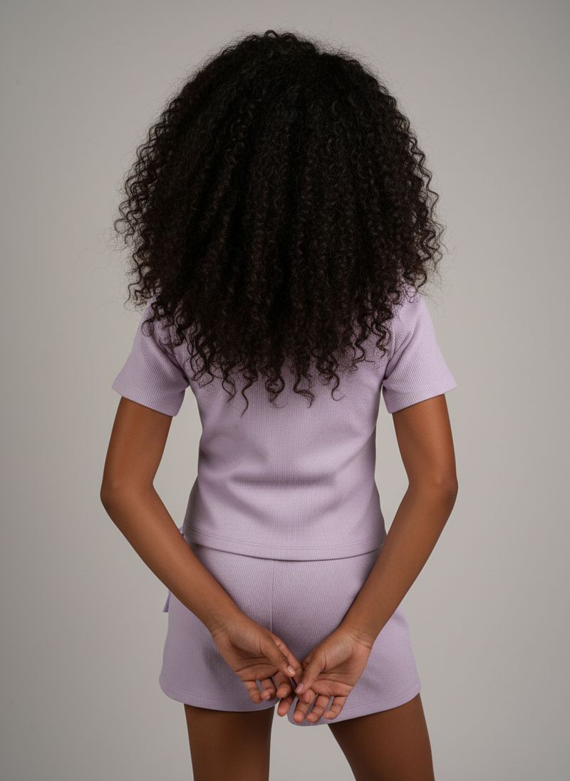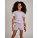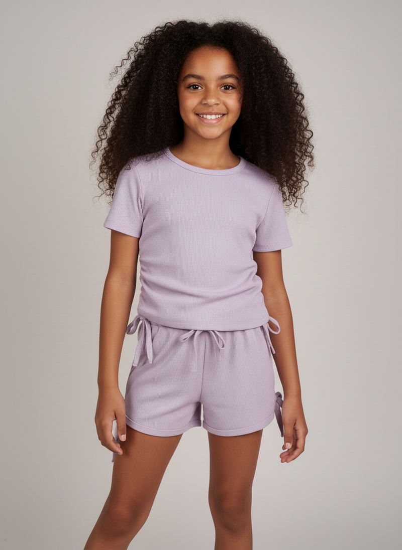 Inspire sua pequena com o Conjunto Canelado Lilás Caedu! Com blusa de manga curta e shorts de amarrar, este conjunto oferece conforto e estilo. O tecido ribana canelado e os detalhes de laços garantem um visual moderno e divertido para as meninas explorarem o mundo com alegria.