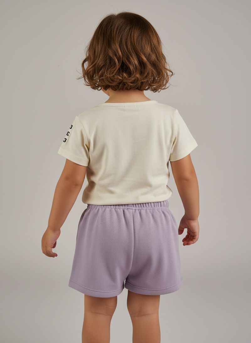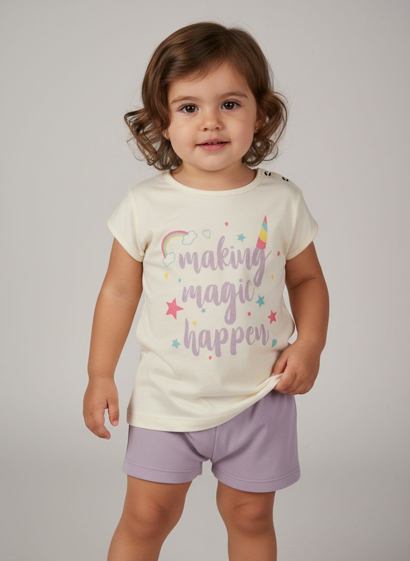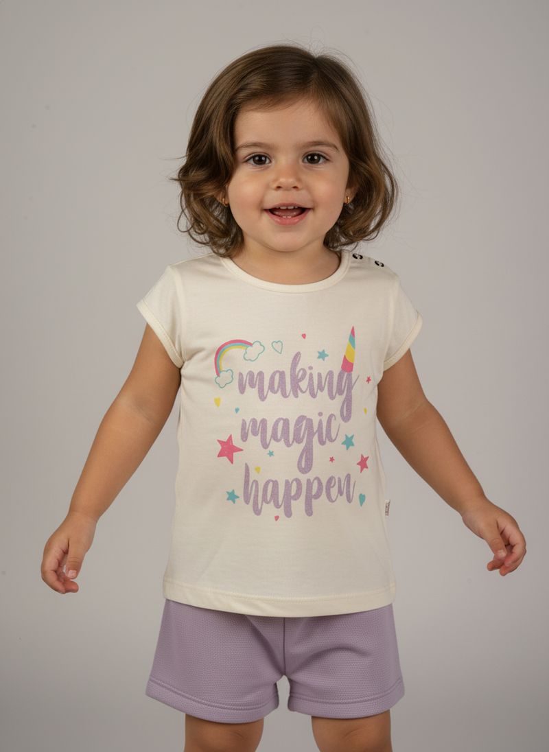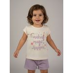 Conjunto Infantil Caedu 'Making Magic Happy' Blusa Off White e Shorts Lilás