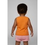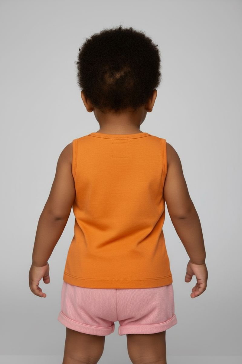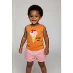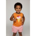 O Conjunto Infantil Regata Sorvete 'Sweet Day' Laranja e Shorts Rosa Caedu, em meia malha, oferece conforto e estilo. Regata laranja com estampa de sorvete e shorts rosa, ideal para um visual moda infantil alegre.
