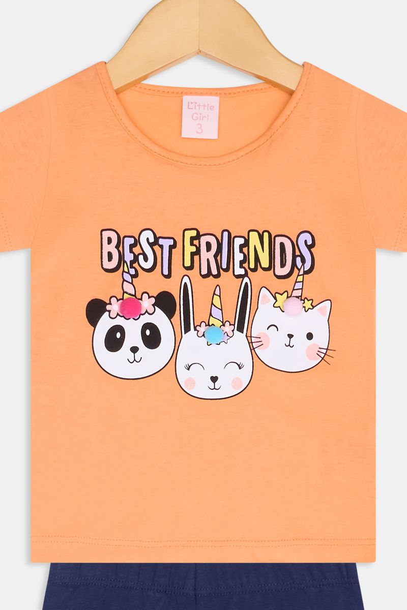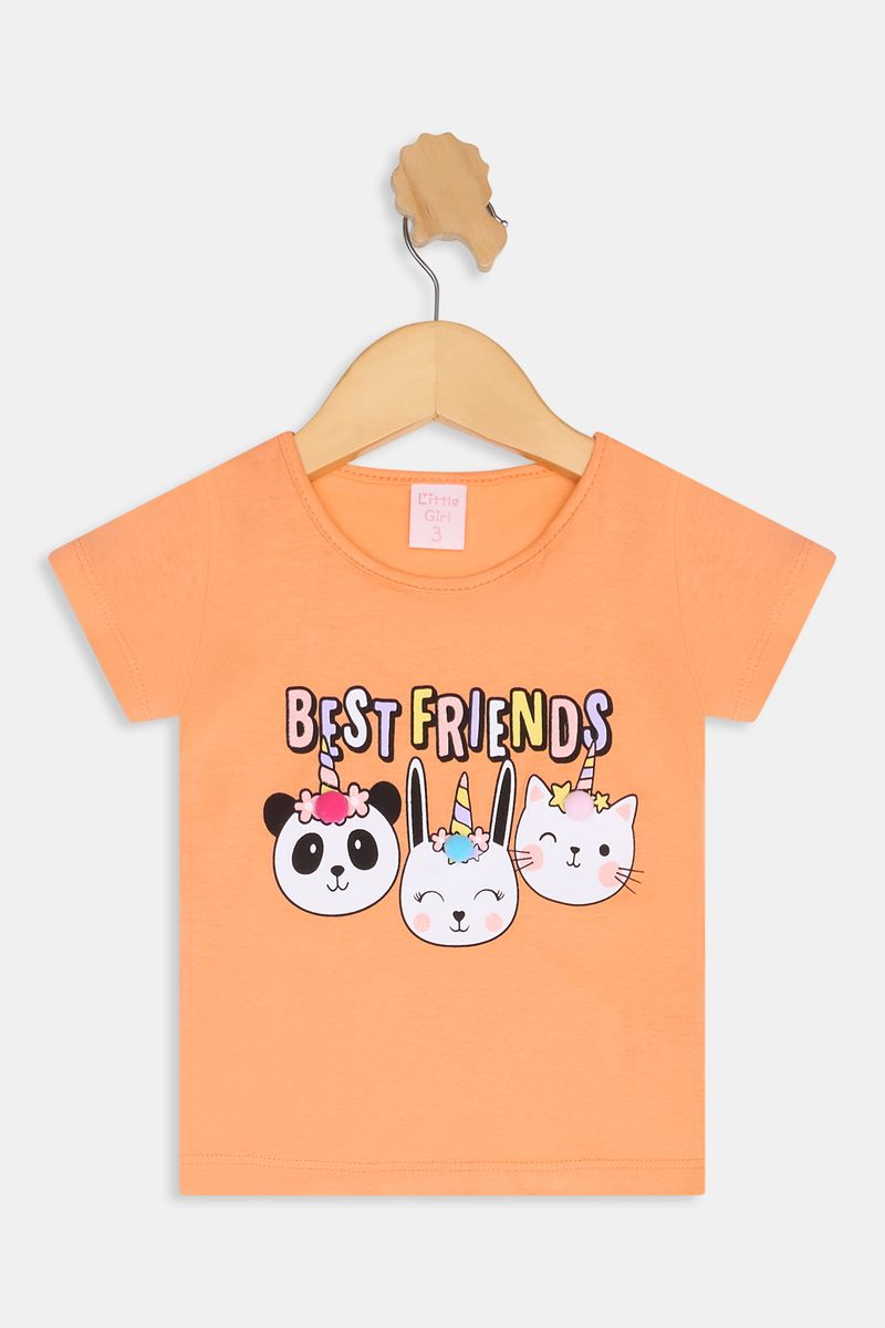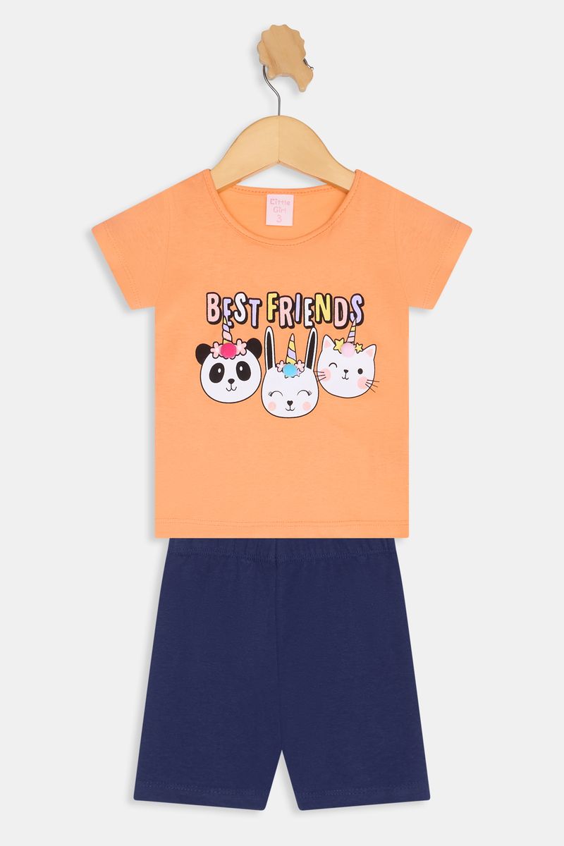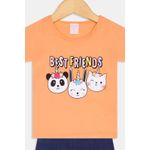 Descubra o Conjunto Infantil Interativo Caedu, perfeito para as pequenas que amam diversão e estilo. Com uma camiseta vibrante na cor coral e shorts azuis, este conjunto apresenta uma estampa exclusiva 'best friends' com animais, ideal para brincadeiras. Conforto e alegria garantidos para o dia a dia, uma excelente opção de roupa infantil.