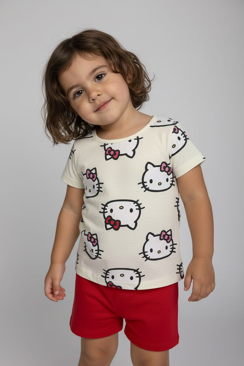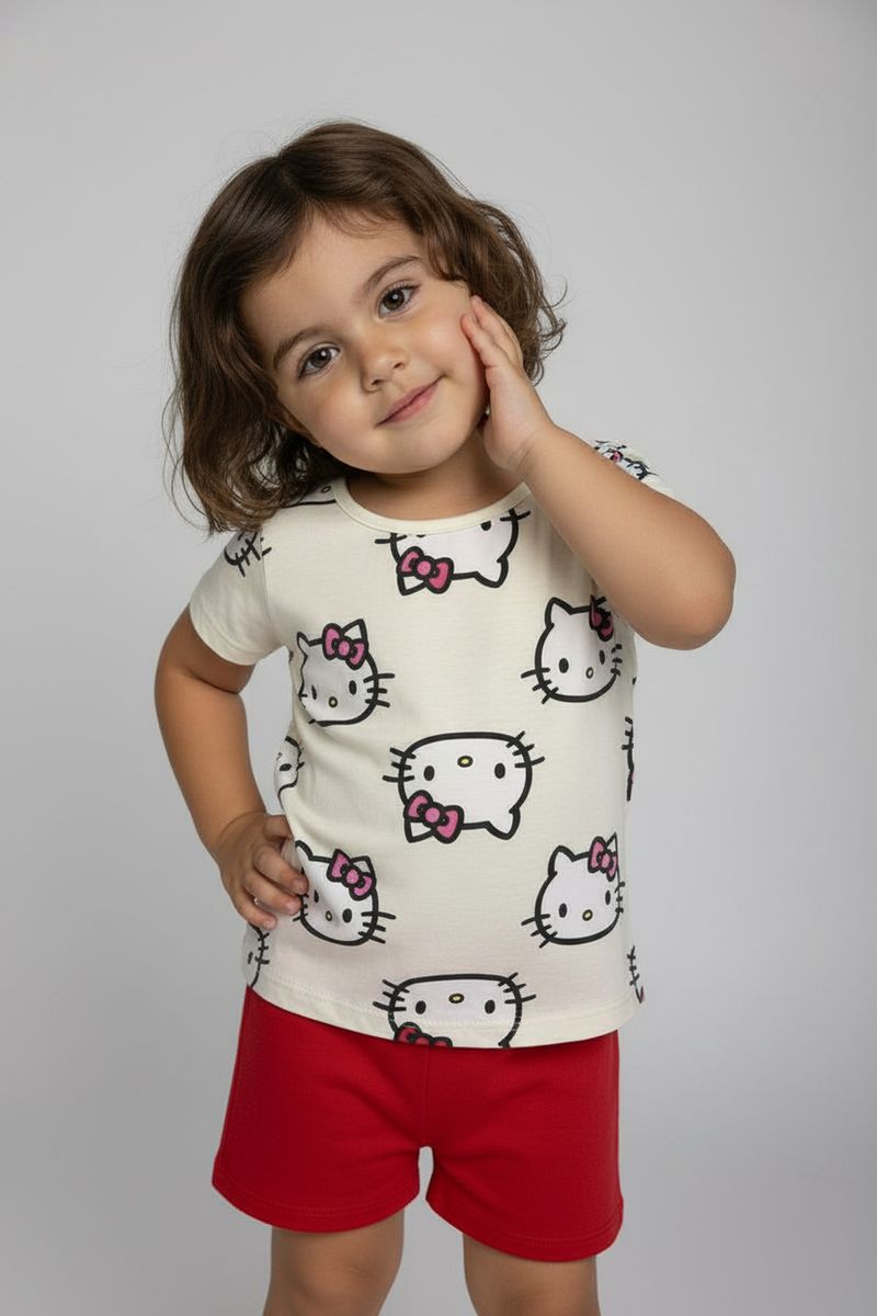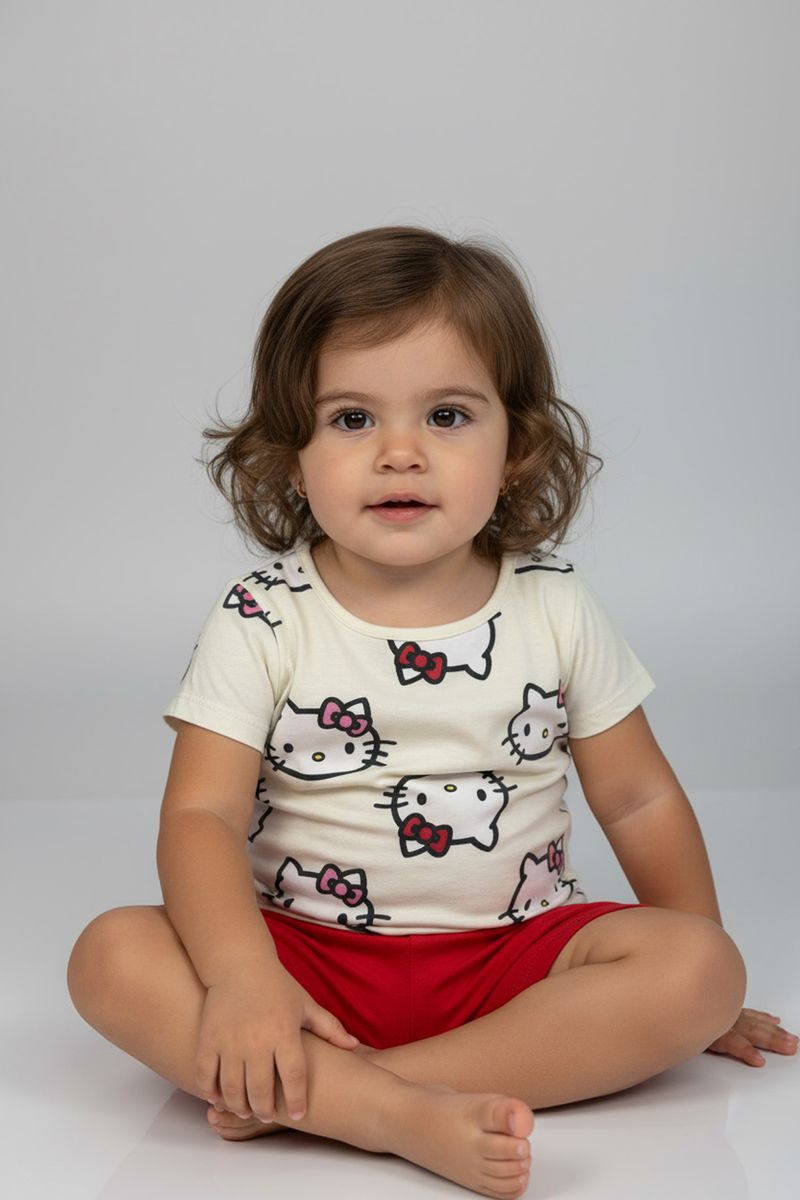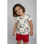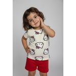 Inspire alegria e conforto com o Conjunto Infantil Caedu Hello Kitty! Este conjunto de blusa off white com estampa e shorts vermelho, feito em 100% algodão, garante um look charmoso e confortável para sua menina. Perfeito para a moda menina, oferecendo estilo e diversão a um bom preço.