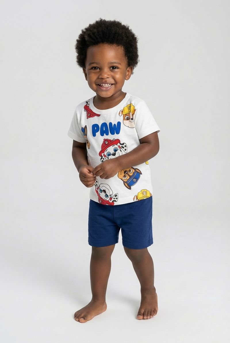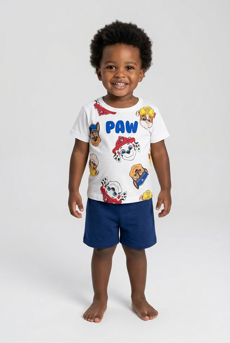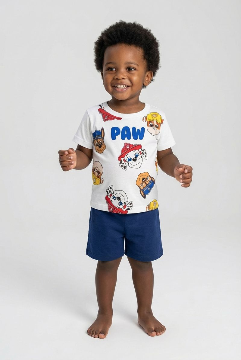 O Conjunto Infantil Patrulha Canina Caedu, em 100% algodão e meia malha, garante conforto e diversão. Com blusa off white estampada e shorts azul marinho, é a roupa infantil perfeita para o dia a dia.
