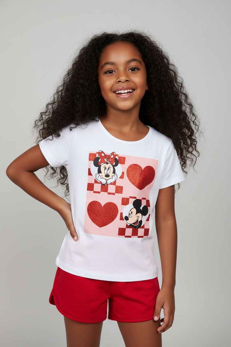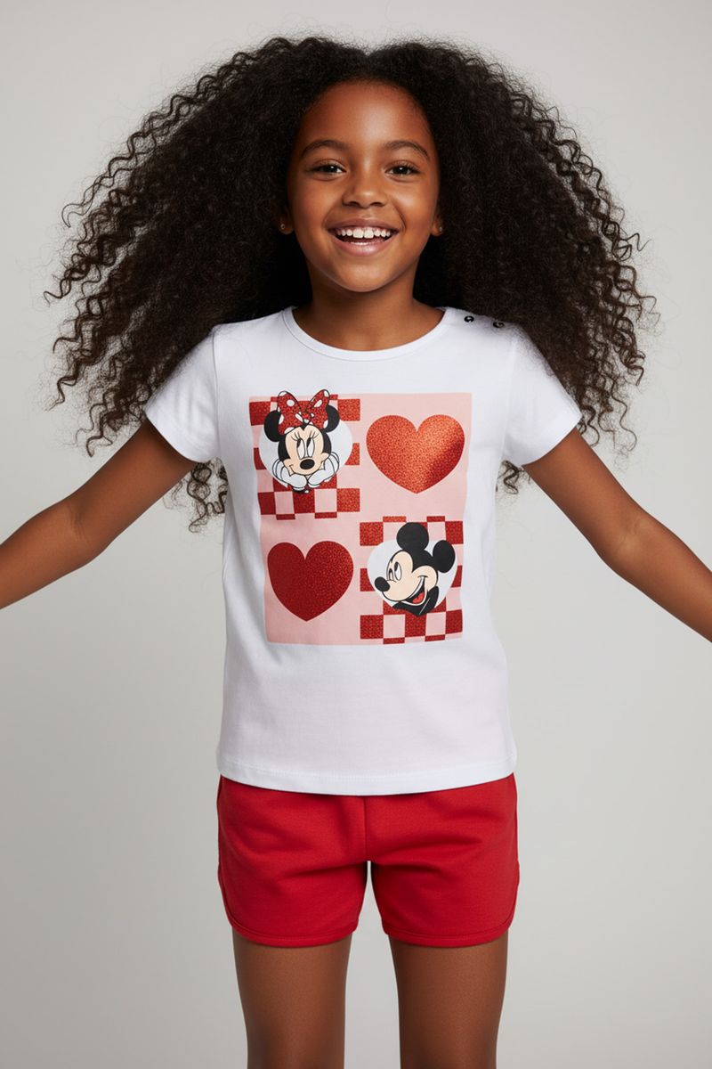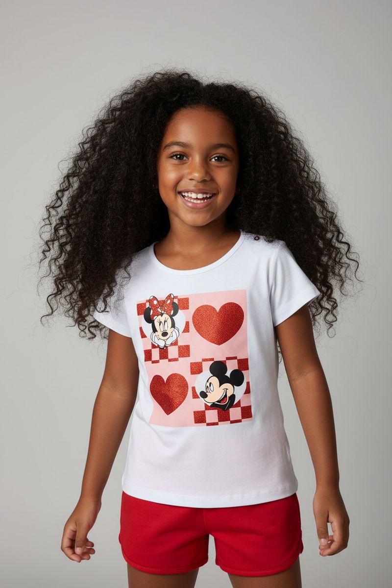 Conjunto Infantil Menina Minnie Mickey Corações Caedu: Blusa e Shorts