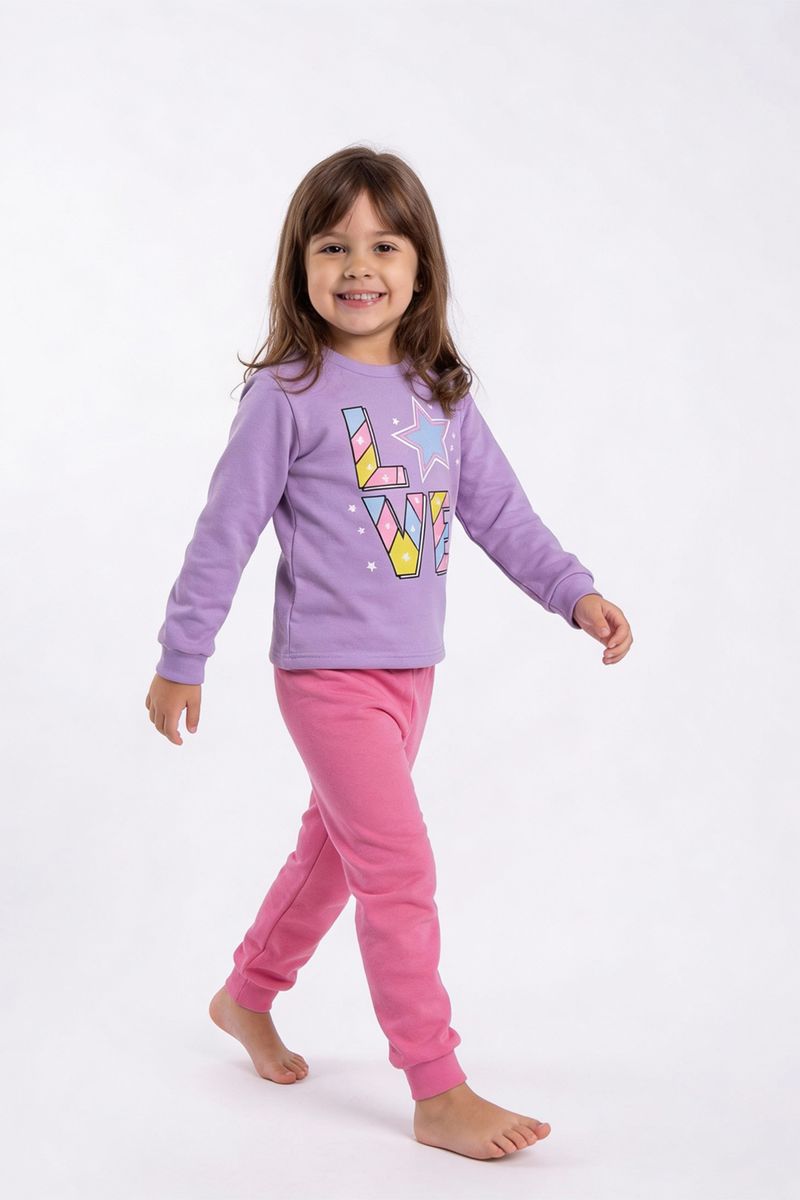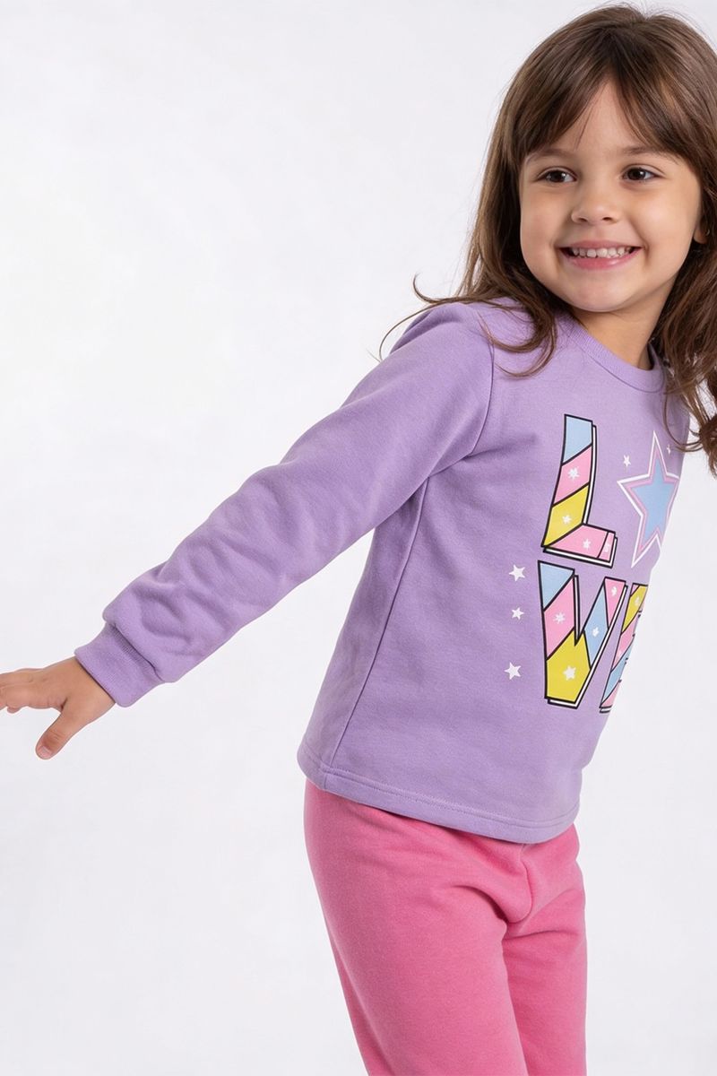 Este conjunto infantil da Caedu é a escolha perfeita para um visual cheio de alegria e conforto. Com uma blusa lilás vibrante e uma calça rosa aconchegante, ele oferece liberdade para brincar e explorar. O material em moletom com felpa garante bem-estar, enquanto a estampa 'LOVE Estrelas' adiciona um toque lúdico e inspirador, tornando cada momento especial.