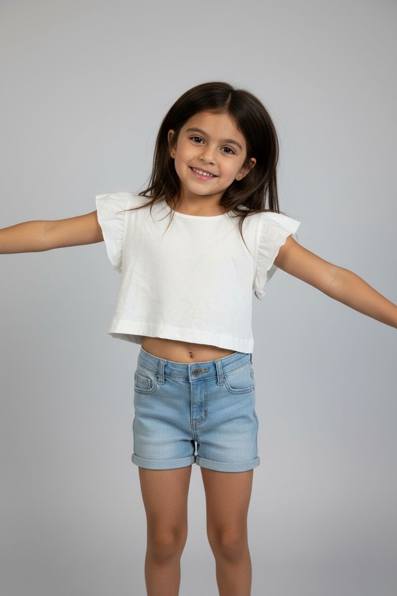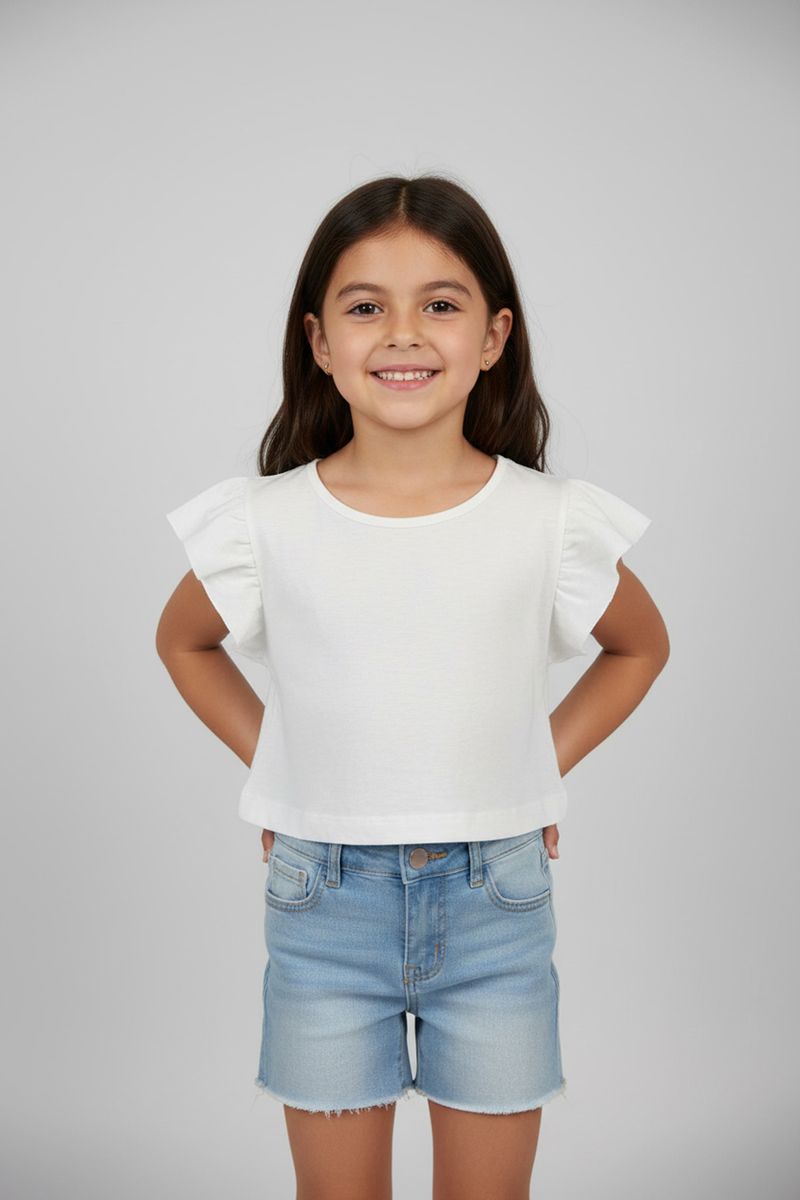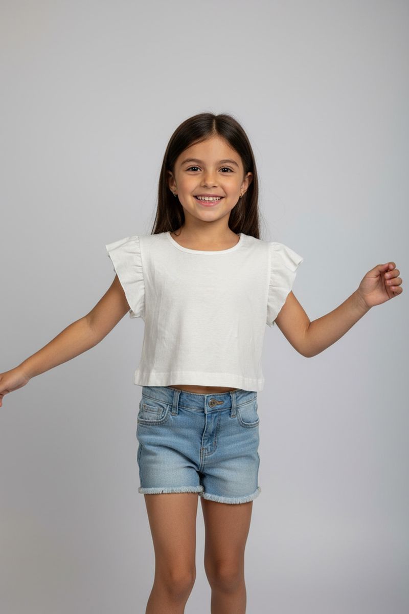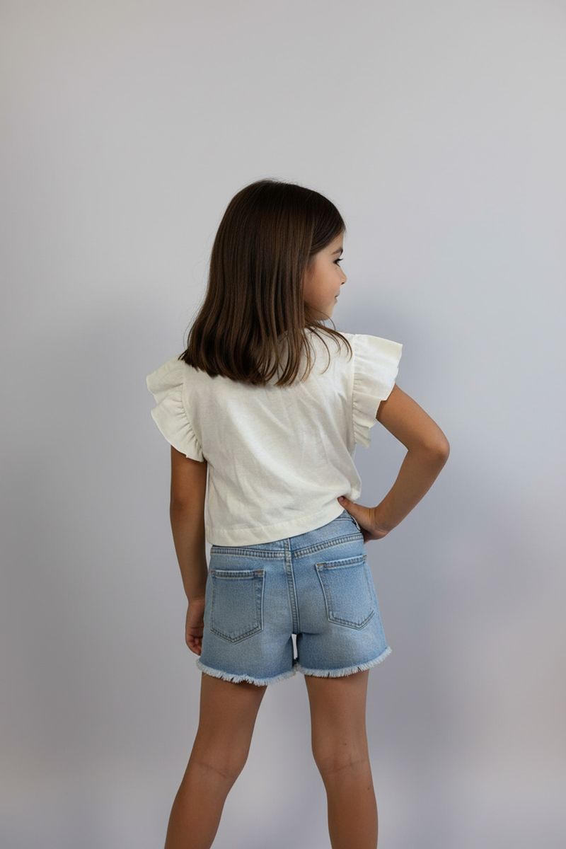 Conjunto Infantil Menina Caedu: Blusa Babados Off White e Short Jeans Desfiado