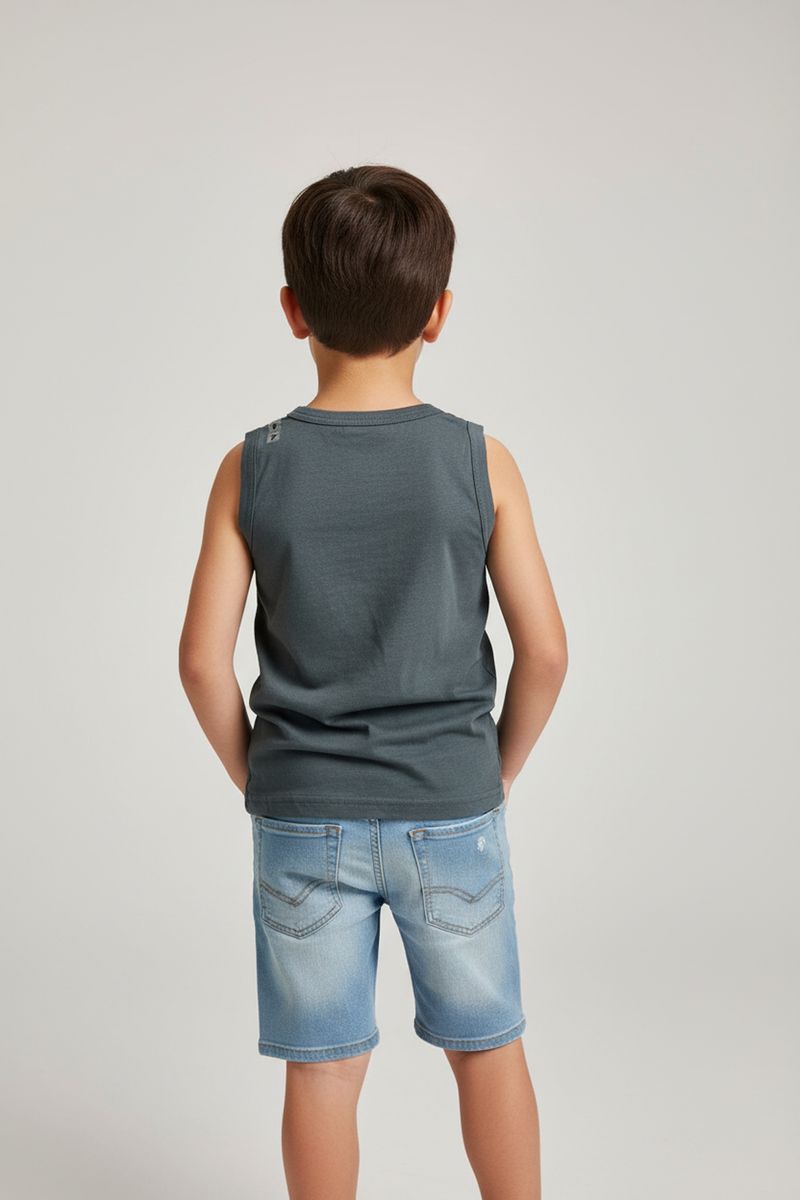 Para um visual completo e cheio de personalidade, combine este conjunto com um tênis esportivo para brincadeiras ou uma sandália casual para passeios. Adicione um boné para um toque despojado e, em dias mais frescos, uma jaqueta jeans leve complementa o estilo, criando um look versátil e moderno para seu pequeno.