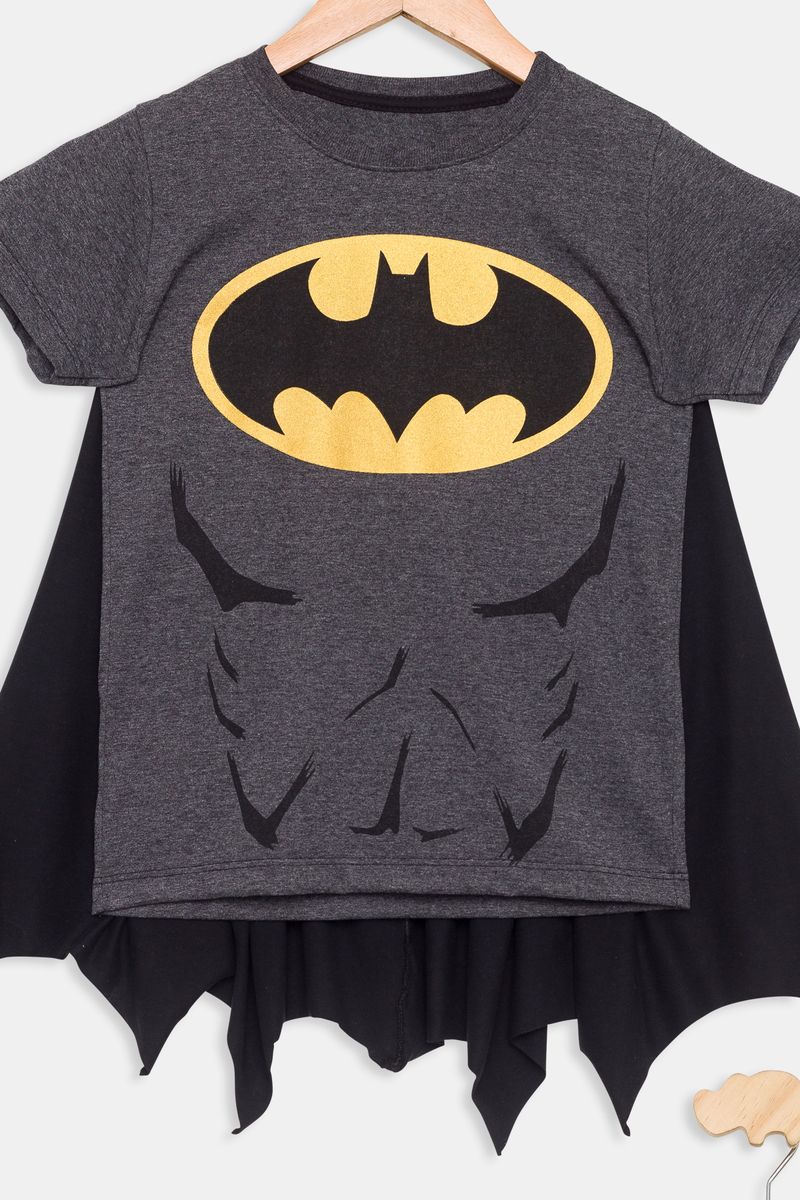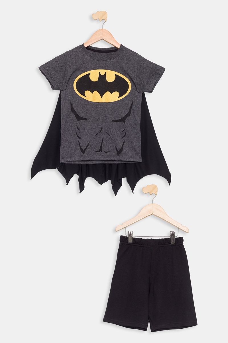 Conjunto Infantil Camiseta com Capa e Shorts Batman Preto Tam 4 a 10
