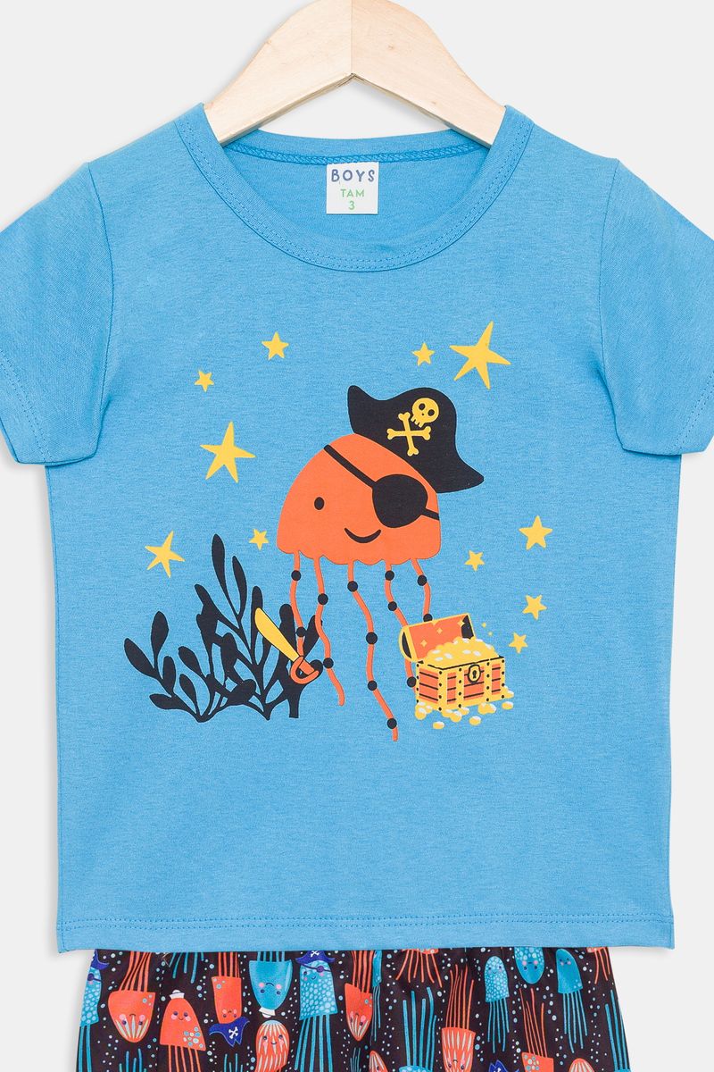 Conjunto Infantil Camiseta e Shorts Pirata Azul Tam 1 a 3
