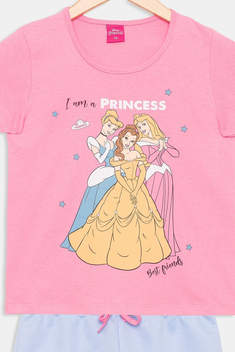 Conjunto Infantil Camiseta e Shorts Princesas Disney Rosa Tam 4 a 10