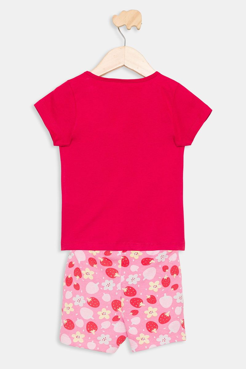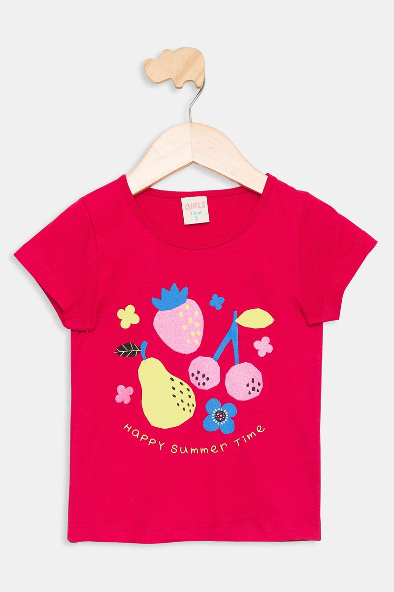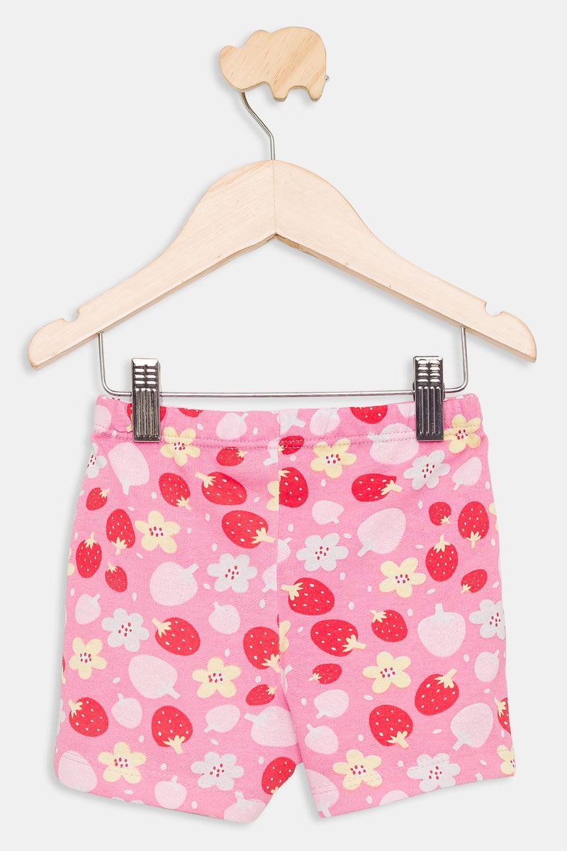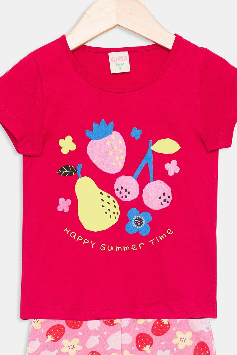 Celebre a alegria com o Conjunto Infantil Caedu! Com blusa rosa fúcsia e shorts de algodão 100%, este look vibrante apresenta estampas de frutas e flores, perfeito para um visual divertido e confortável. Sua menina vai amar a moda infantil cheia de vida!
