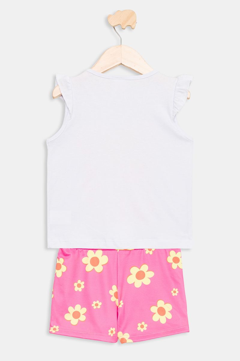 Para um visual completo, combine este conjunto com sandálias coloridas ou tênis brancos para um toque despojado. Adicione uma tiara floral ou um laço no cabelo para um charme extra. Em dias mais frescos, um casaquinho leve de algodão complementa o look com elegância.