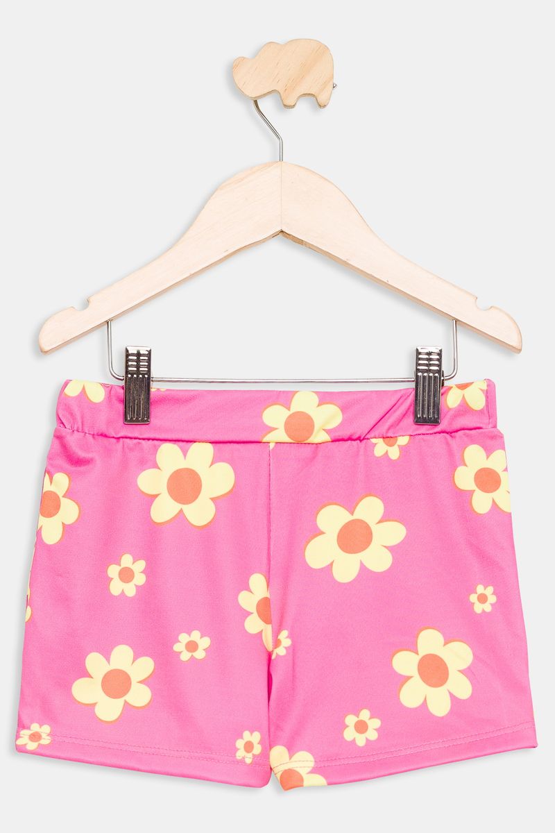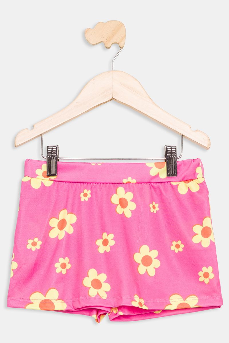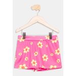 Detalhes do short: Rosa vibrante, estampa floral, cintura elástica e franzida