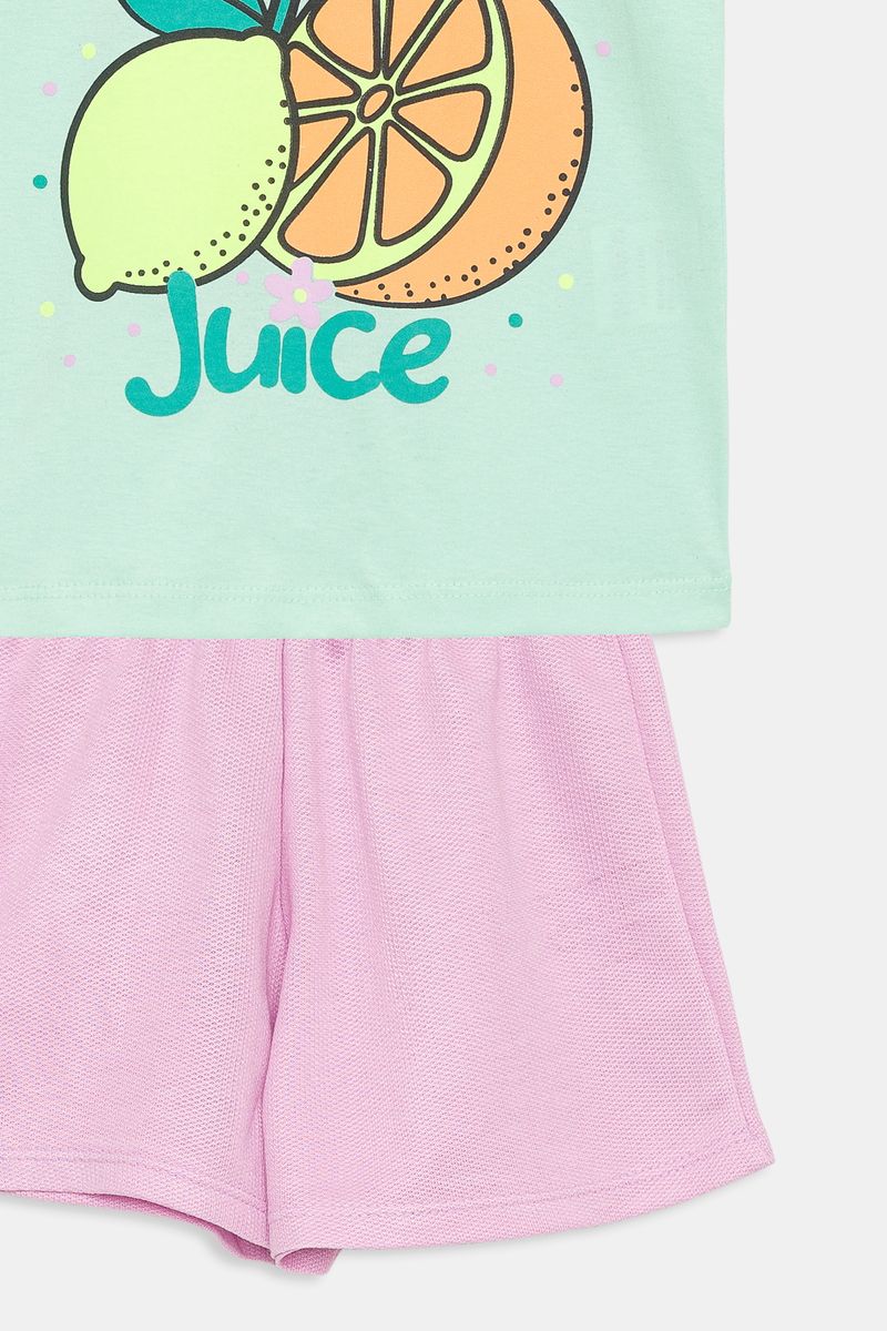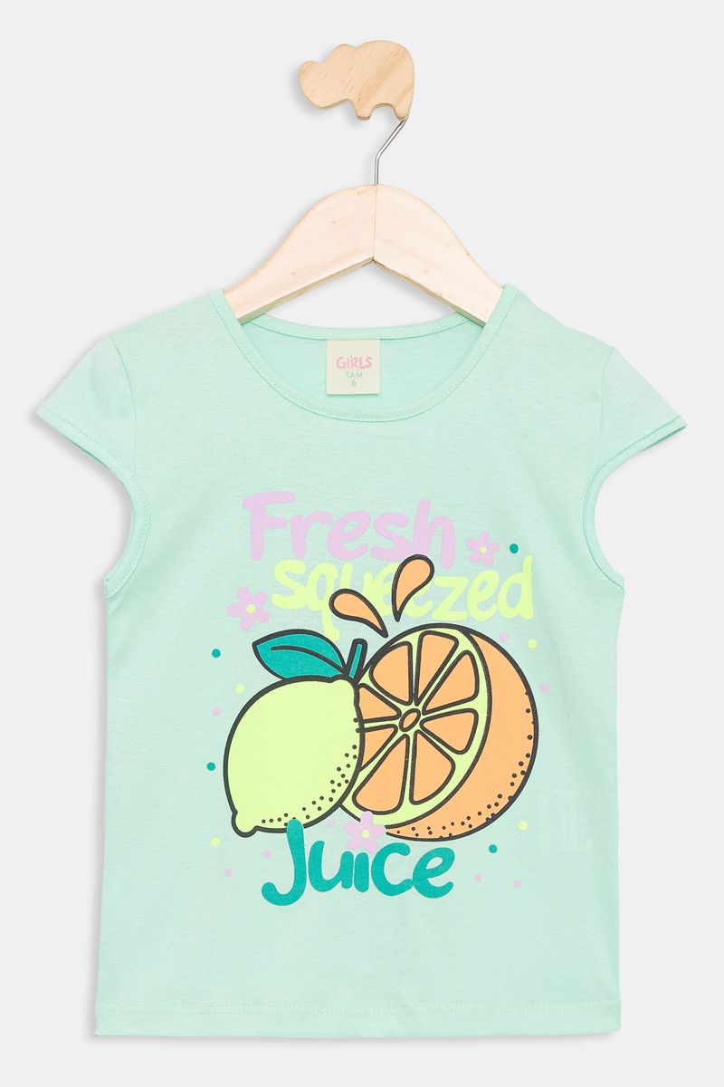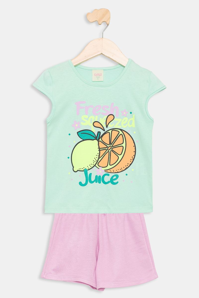 Conjunto Infantil Regata e Shorts Frutas Verde Claro Tam 4 a 8