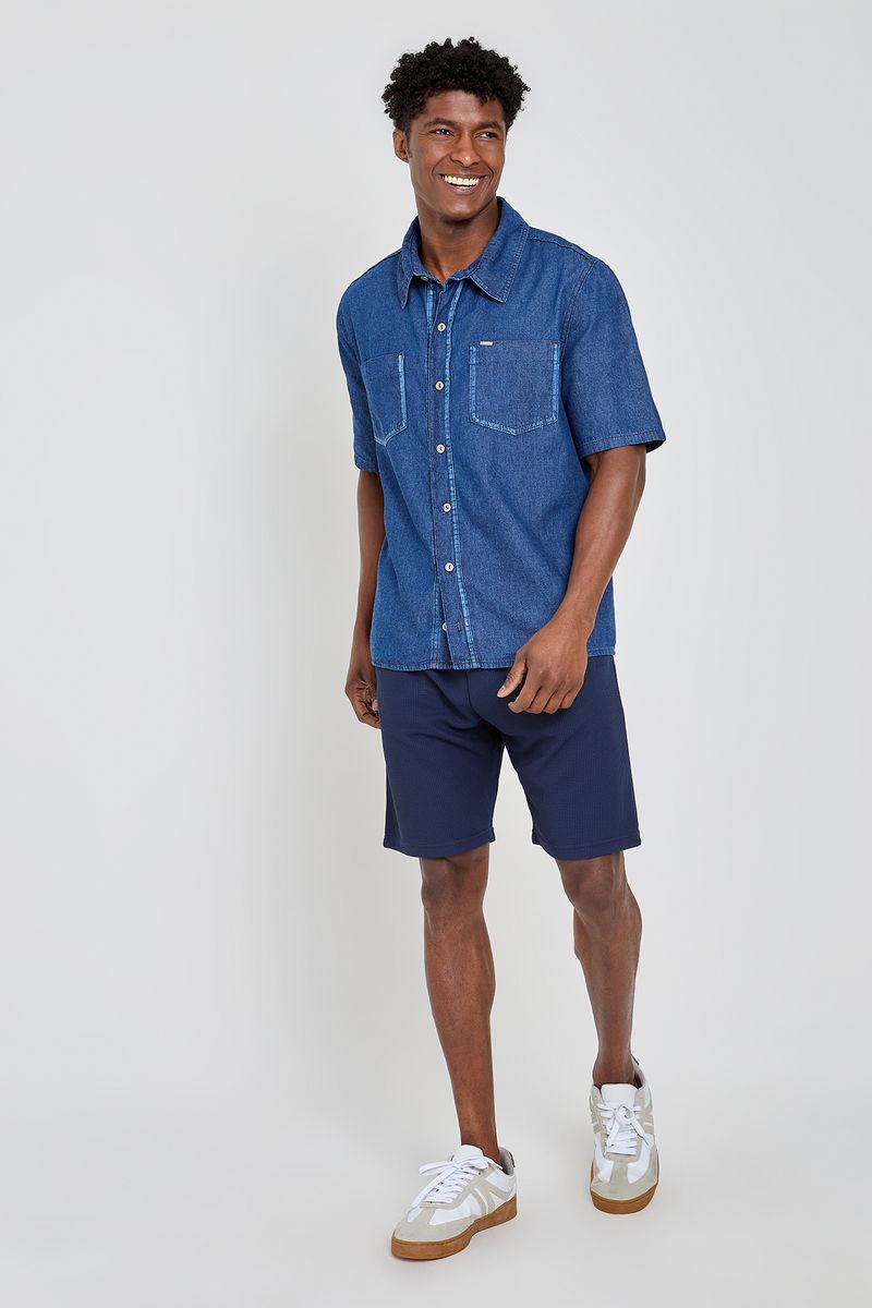 Combine sua camisa jeans escuro com bermudas de sarja para um visual despojado, ou com calças chino para um toque mais arrumado. Complete o look com tênis casuais ou sapatênis e acessórios como relógios e óculos de sol para um estilo autêntico e moderno.