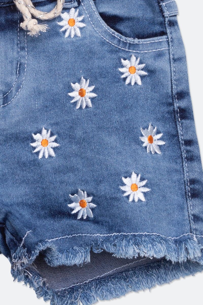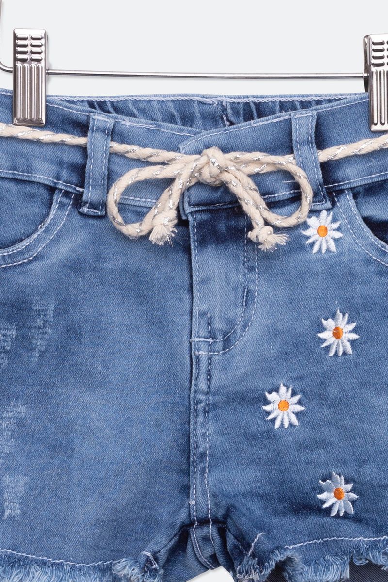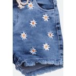 Shorts Jeans Infantil com Bordado Azul Médio Tam 4 a 8