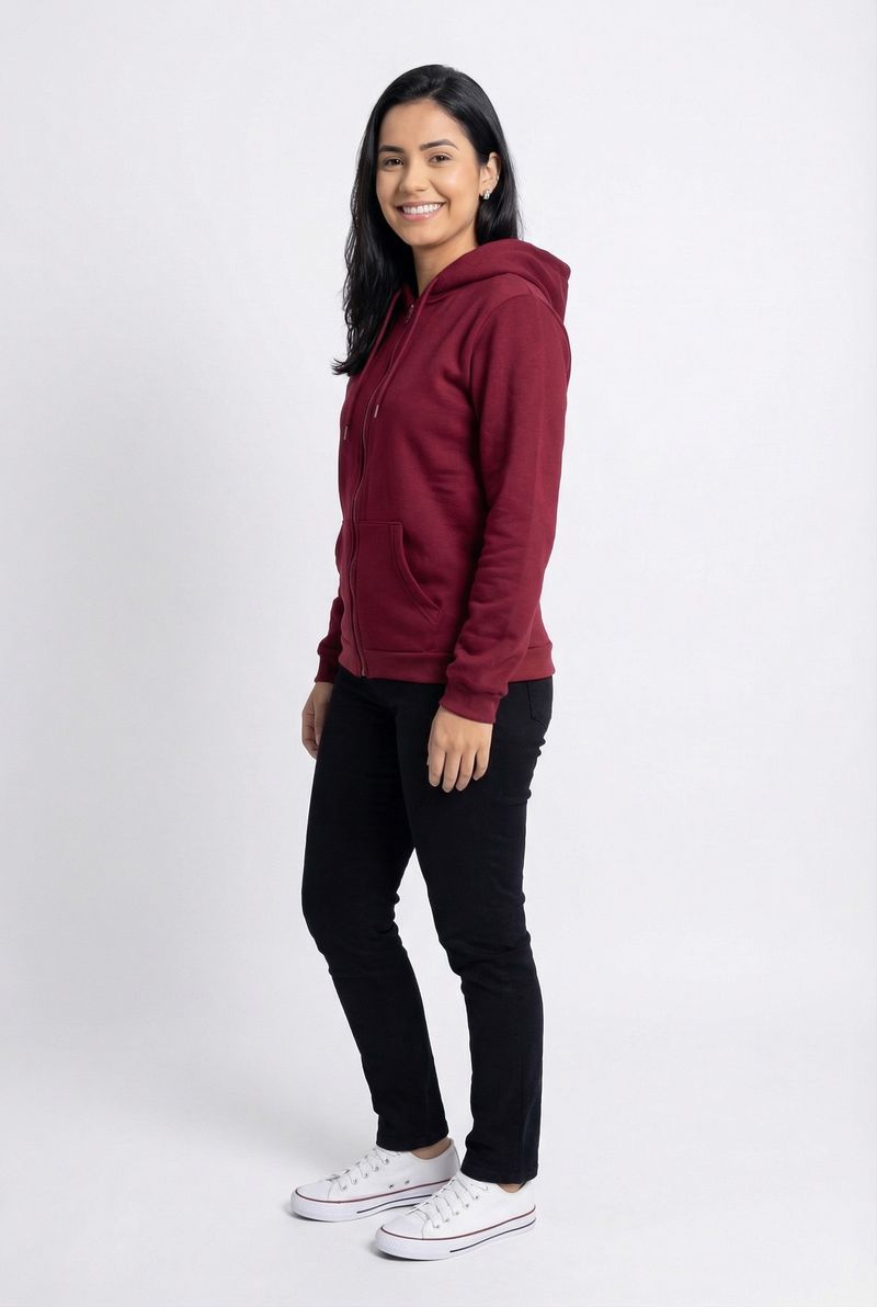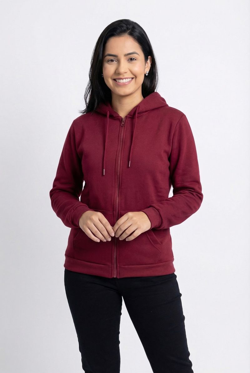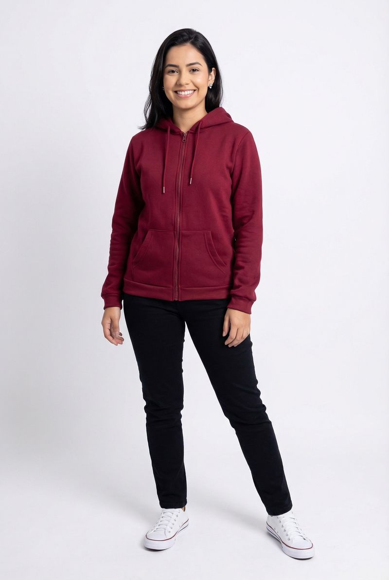 VestuárioFemininoTopsFem esp fem004f top mol zip capuz vinho vermelho escuro