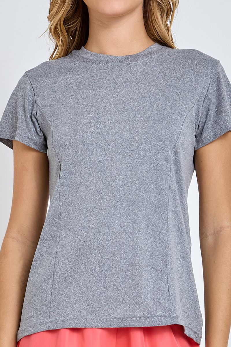 Sinta o conforto ativo com a Camiseta Feminina Manga Curta Cinza Mescla Caedu. Em 95% poliéster e 5% elastano, oferece liberdade de movimento e toque suave. Versátil, roupa feminina ideal para o dia a dia.