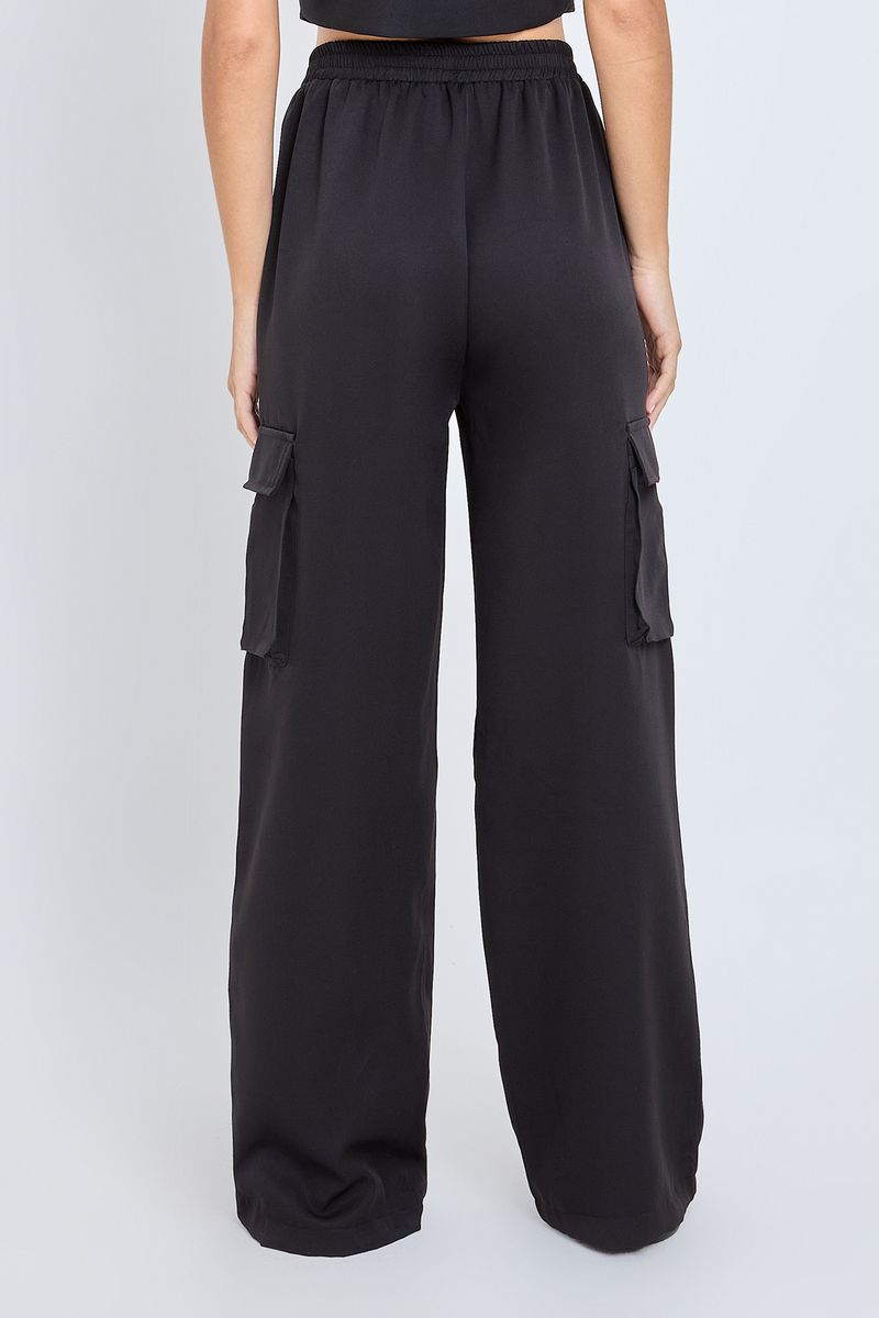 Detalhes: Cós de amarração, bolsos cargo laterais