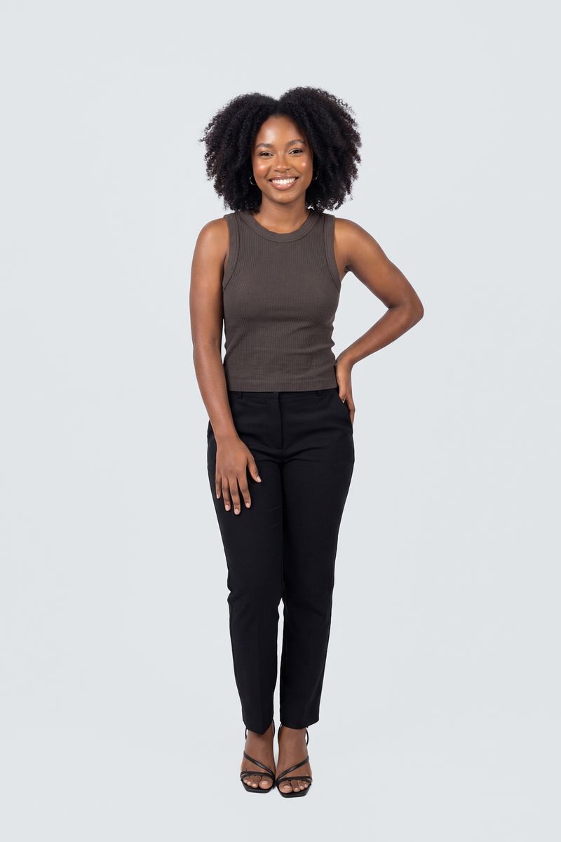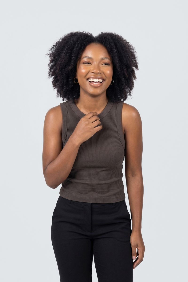 Eleve seu estilo com o Top Regata Canelada Gola Redonda Feminina Marrom Essencial Caedu. Confeccionado em malha canelada, oferece conforto e caimento perfeito. Ideal para compor looks modernos e versáteis, destacando sua elegância em qualquer ocasião com a moda Caedu.