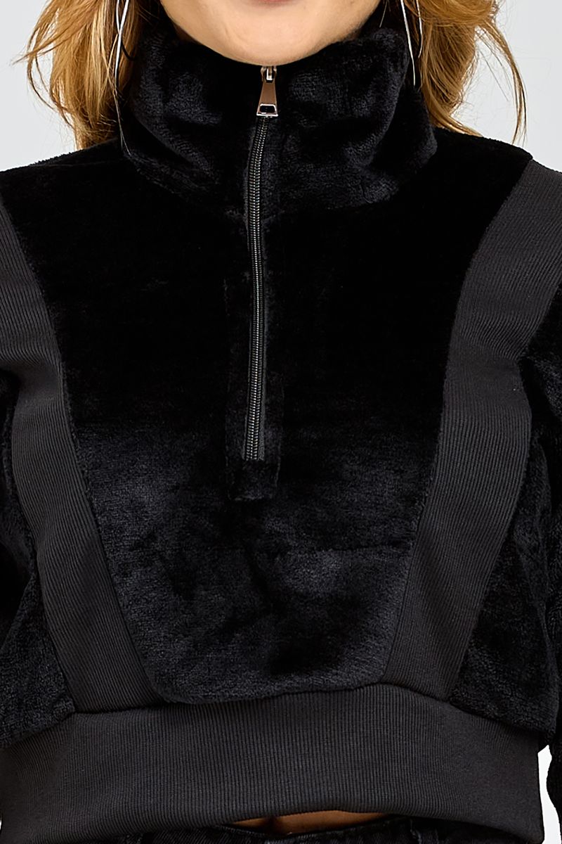 O cropped moletom fur preto Caedu é a roupa ideal. Em 100% poliéster com material FUR, oferece conforto e toque macio. Perfeito para um visual moderno e despojado, esta peça de moda feminina é versátil para seu dia a dia. Estilo garantido!