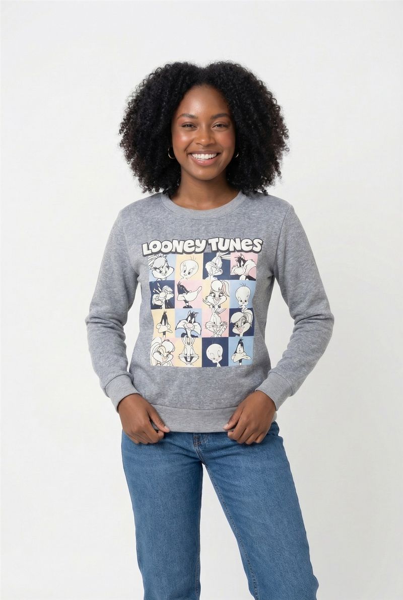 VestuárioFemininoMoletonsFem fsh ffm068 top mol looney tunes cinza claro mescla