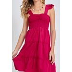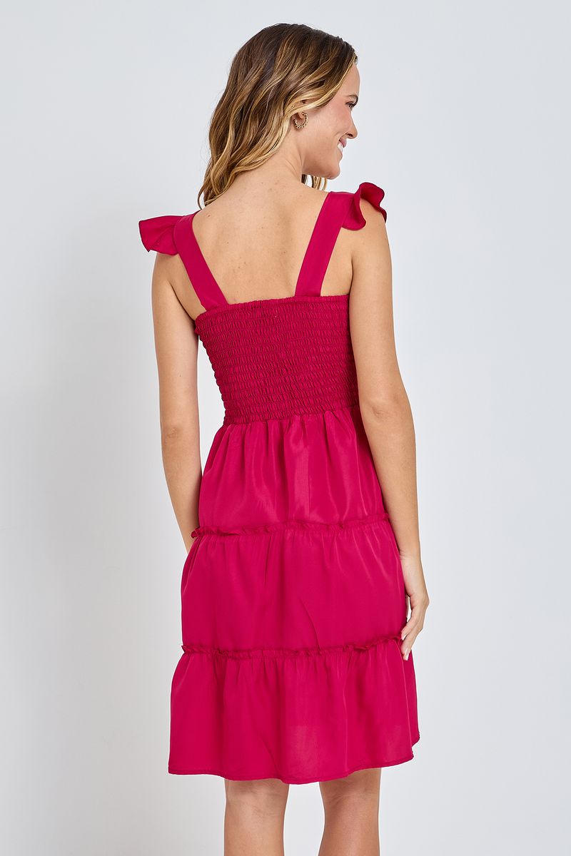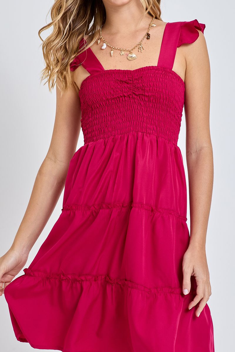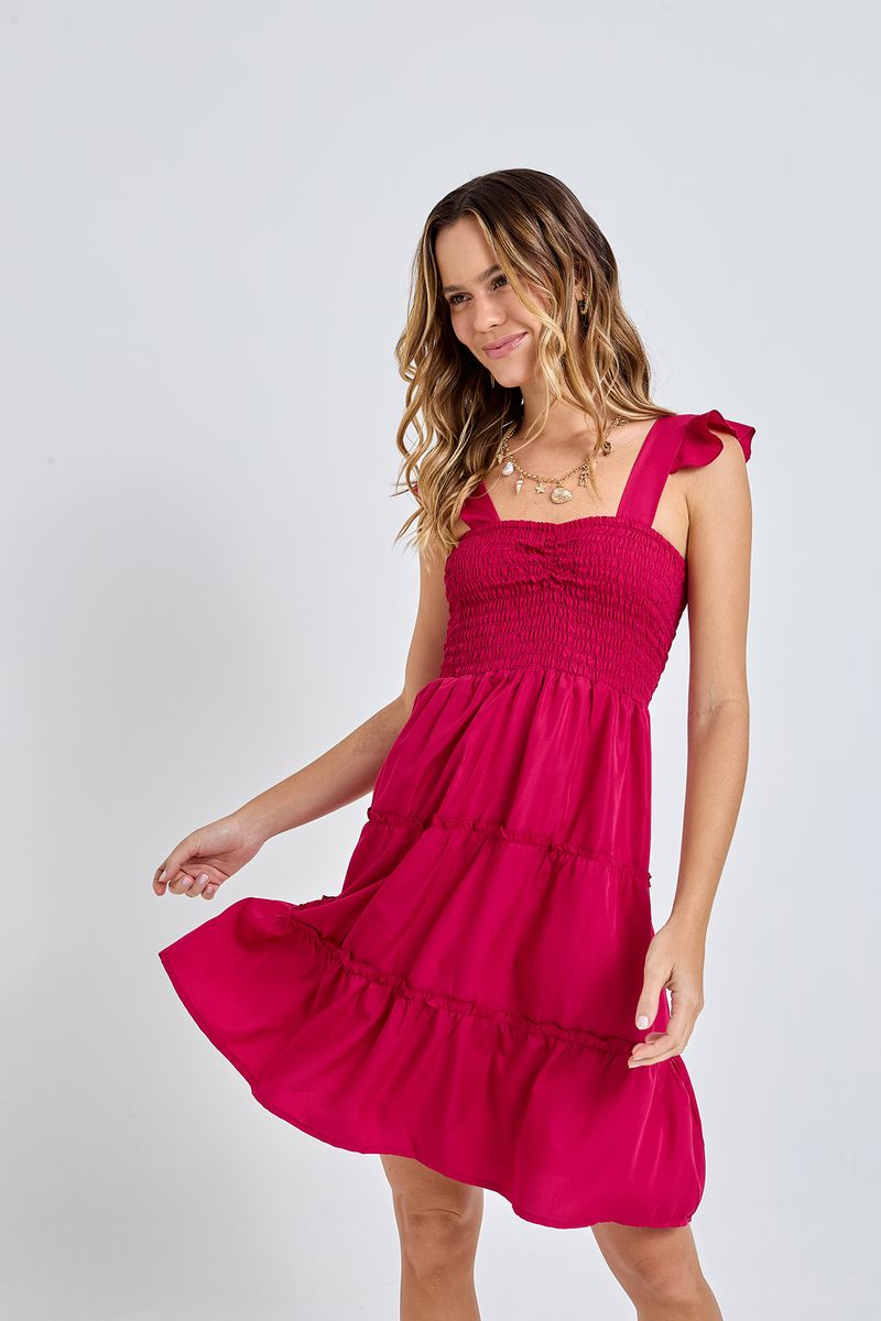 Detalhes: Lastex no busto, babados nas alças e na saia em camadas