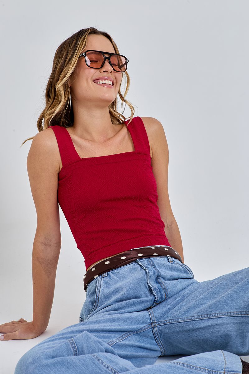 Detalhes: Texturizado, sem costura, decote quadrado