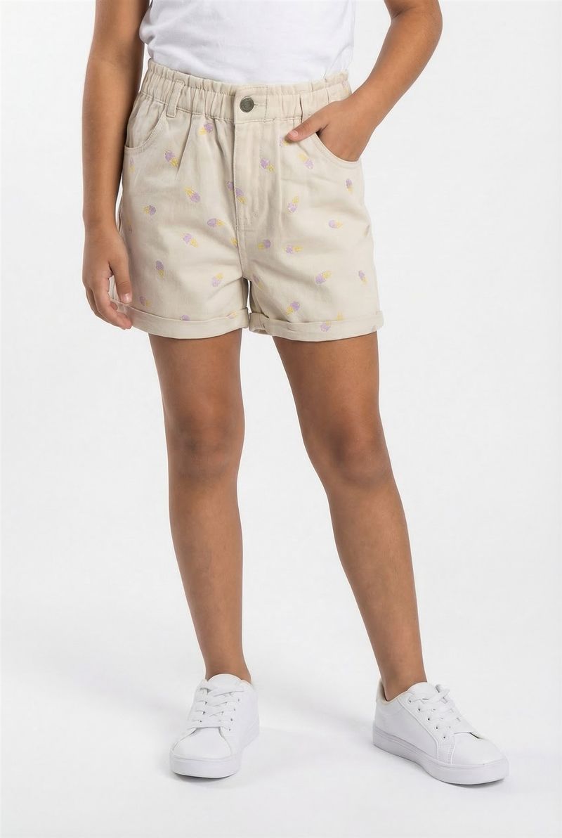Descubra o Shorts Infantil Caedu, uma peça chave em sarja bege claro que une conforto e moda. Com bordados de sorvetes coloridos e um toque de elastano, oferece liberdade para brincar. Seu tom terroso eleva qualquer look infantil, garantindo estilo e versatilidade.