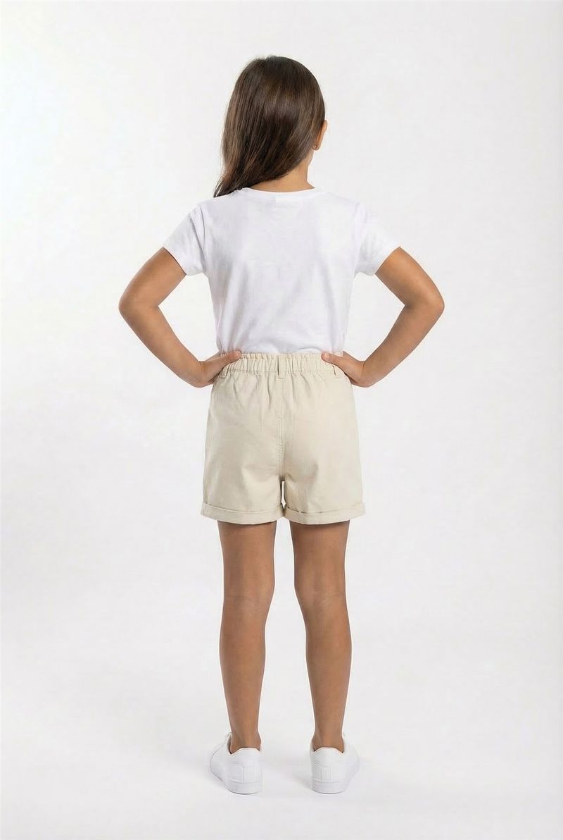 Combine o shorts de sarja com blusas leves de algodão para um visual casual, ou com uma camisa polo para um toque mais arrumado. Nos pés, sapatilhas, tênis ou sandálias coloridas complementam o look. Adicione um chapéu ou óculos de sol para um charme extra e um visual completo de moda infantil.