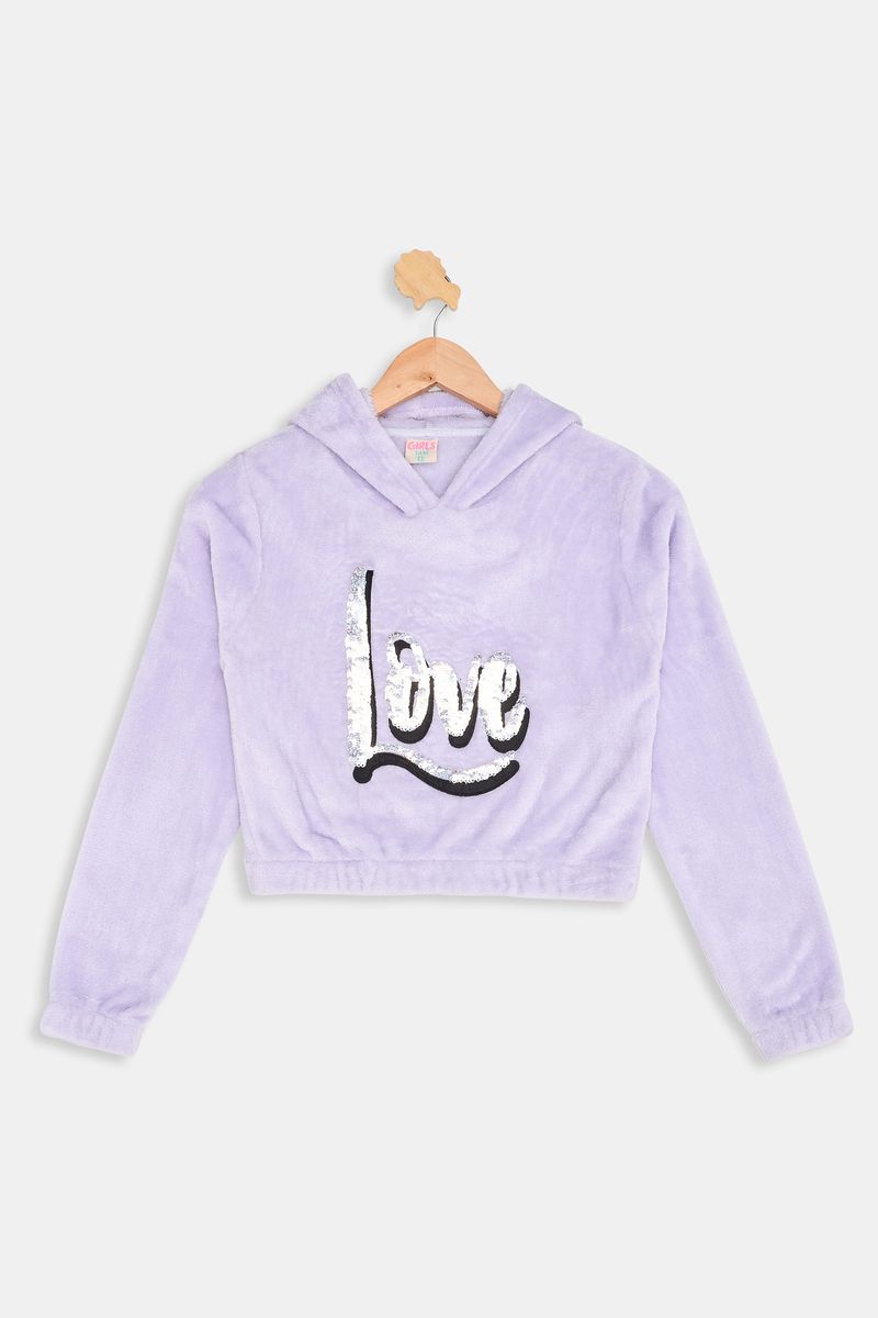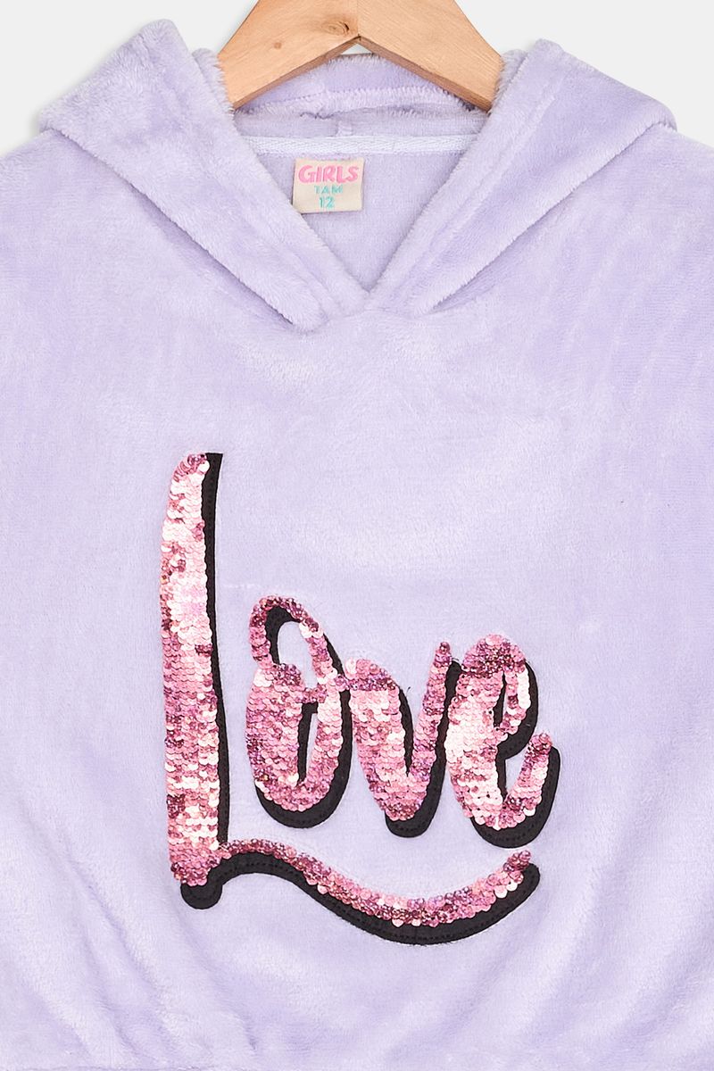 Desperte o estilo da sua pequena com a Blusa Cropped Lilás Caedu! Uma peça de moda infantil que combina conforto e tendência, perfeita para um look moderno. Com capuz, estampa "Love" em lantejoulas e tecido 100% poliéster de toque macio, esta roupa é ideal para brilhar em qualquer ocasião. Encontre na Caedu!