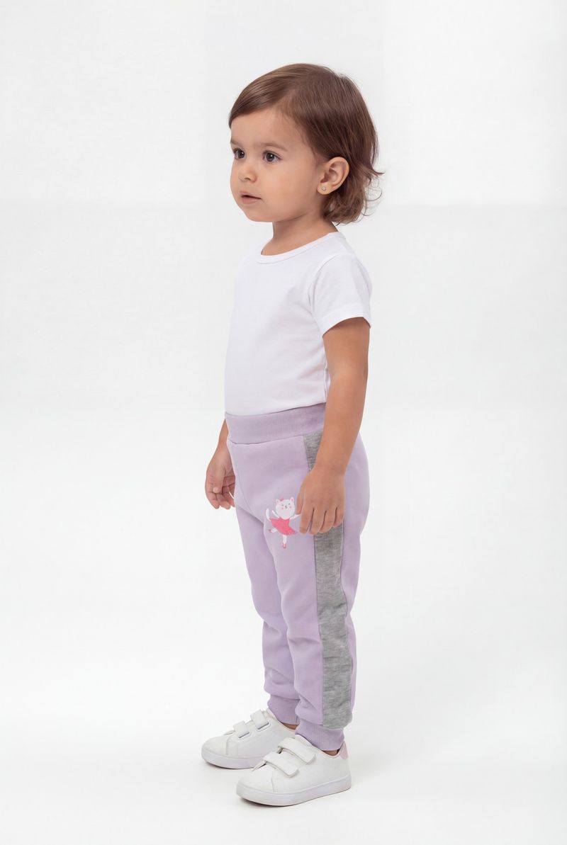 A Calça de Moletom Infantil Caedu Lilás oferece conforto e estilo para as pequenas. Feita em moletom com felpa 100% poliéster, garante maciez e durabilidade. O design encantador com a gatinha bailarina traz um toque de magia à roupa infantil.