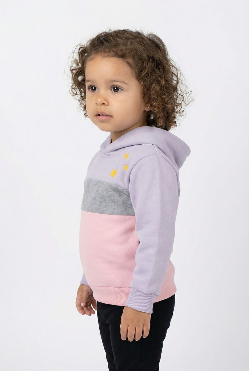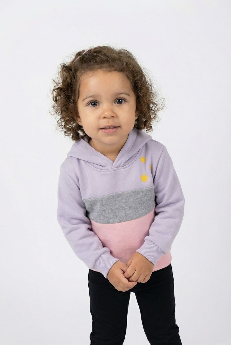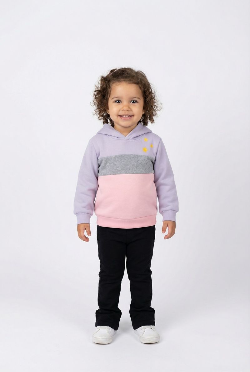 O Moletom Infantil Estrelado Color Block Caedu garante conforto e estilo. Em moletom com felpa 100% poliéster, seu design vibrante em blocos de cor lilás, cinza e rosa, com estrelas amarelas, adiciona um toque lúdico. Essencial para a roupa infantil.