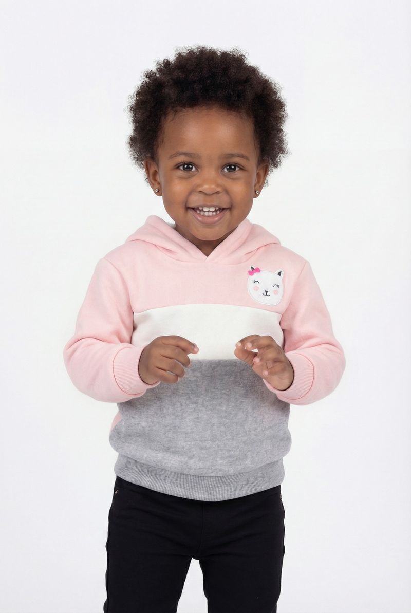 O Moletom Infantil Caedu Gatinha Color Block oferece conforto e estilo para as pequenas. Com design rosa claro, detalhes em color block e um charmoso aplique de gatinha, é perfeito para o dia a dia. Feito em 100% poliéster com felpa, garante aconchego e durabilidade.