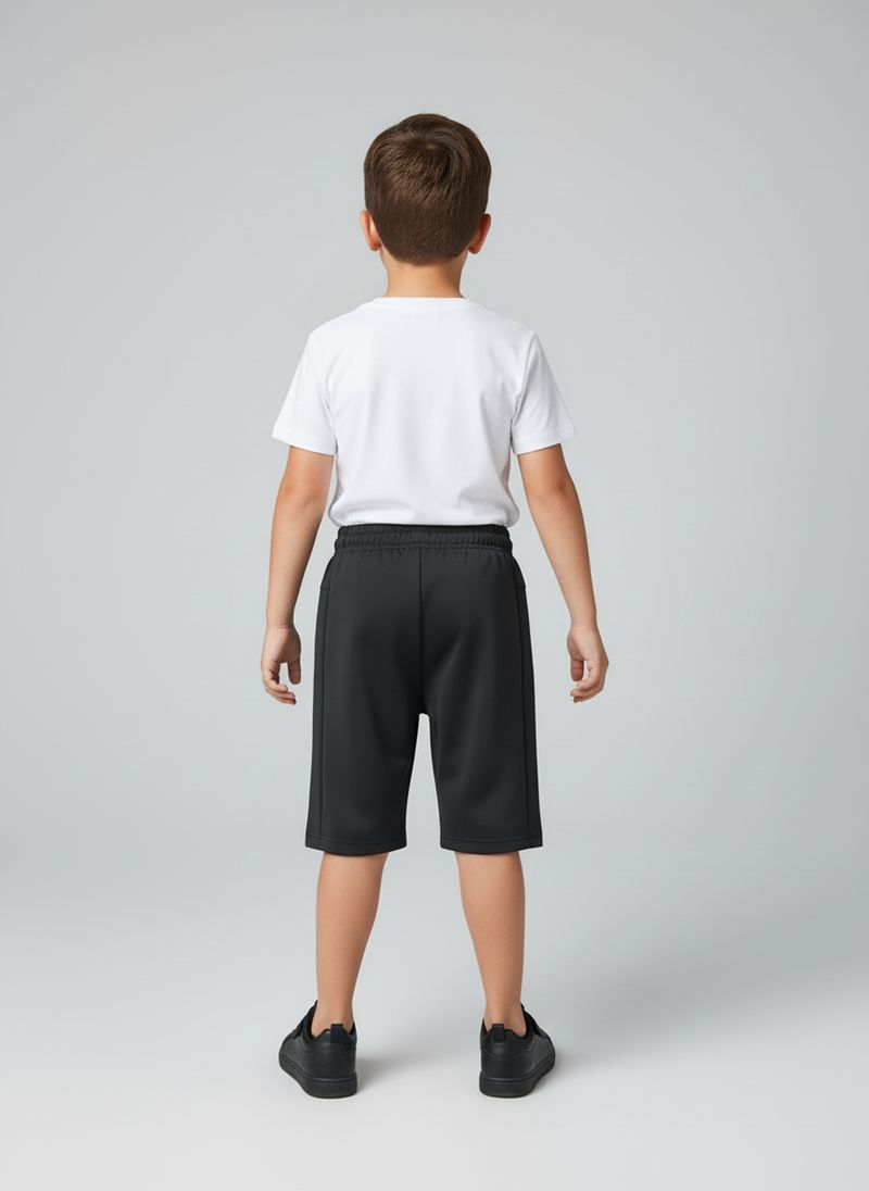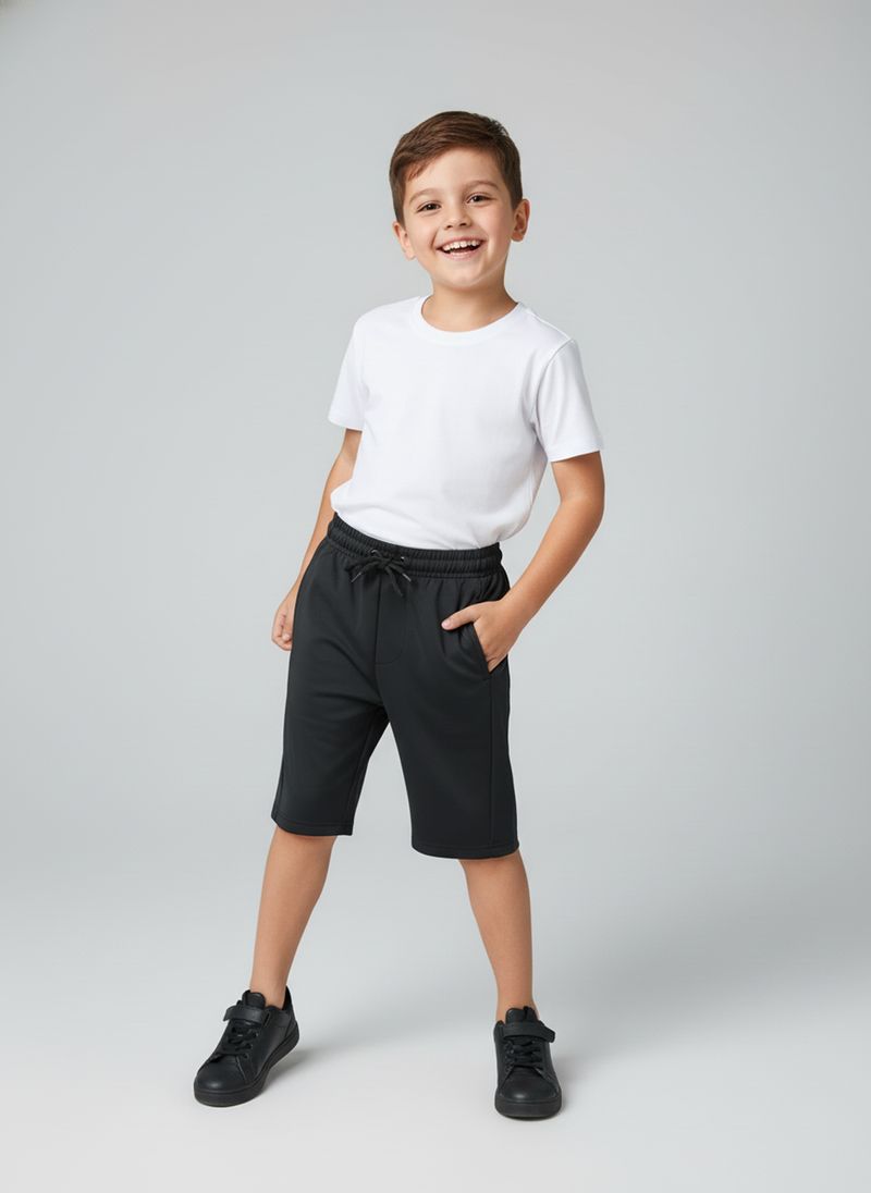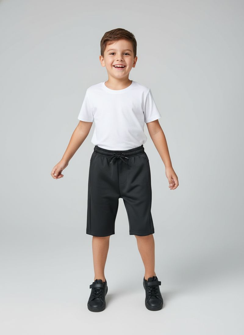 Combine a bermuda preta infantil com uma camiseta branca para um visual clássico e despojado. Para um toque mais moderno, aposte em camisetas coloridas ou regatas. Complete o look com tênis pretos para o máximo conforto e uma jaqueta leve para dias mais frescos, criando um estilo versátil e cheio de personalidade.