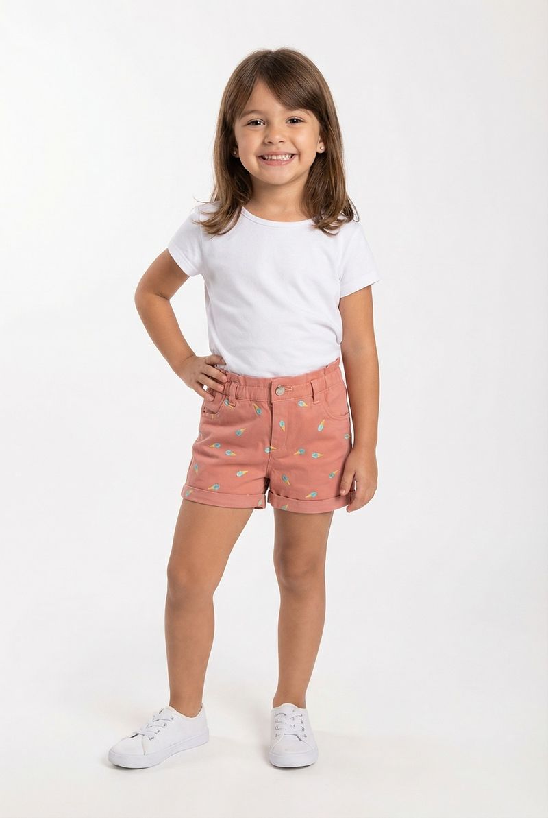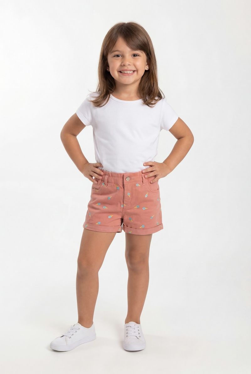 VestuárioInfantilBermudas e ShortsInf 4/8 nas ibh090b shorts sarja bordado rosa medio