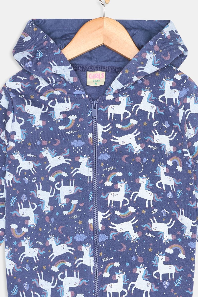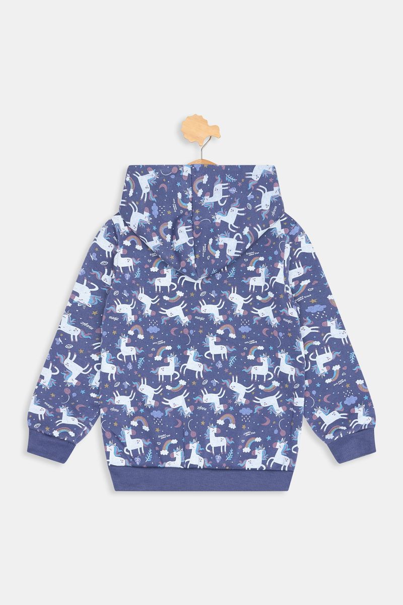 Deixe a imaginação fluir com a Jaqueta Moletom Infantil Unicórnio Caedu! Confeccionada em 100% poliéster com felpa, oferece conforto e maciez. Sua estampa vibrante de unicórnios, arcos-íris e a palavra 'magic' em azul escuro traz um toque de encanto. Perfeita para as pequenas exploradoras!
