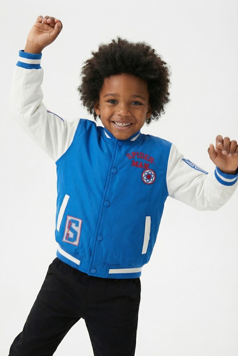 Vista seu pequeno herói com a Jaqueta Bomber Colegial Infantil Spider-Man Caedu! Confeccionada em microfibra 100% poliéster, oferece conforto e durabilidade. O design vibrante azul e branco com bordados do Spider-Man traz a moda infantil para o dia a dia, ideal para aventuras com muito estilo. Uma ótima roupa Caedu!