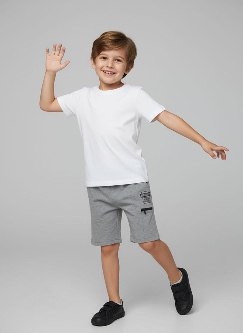 O Shorts Infantil Caedu oferece conforto e estilo para o dia a dia. Em moletom cinza claro, garante liberdade de movimento. Com cordão ajustável e bolso com zíper, é uma roupa infantil prática e cheia de personalidade para todas as aventuras.