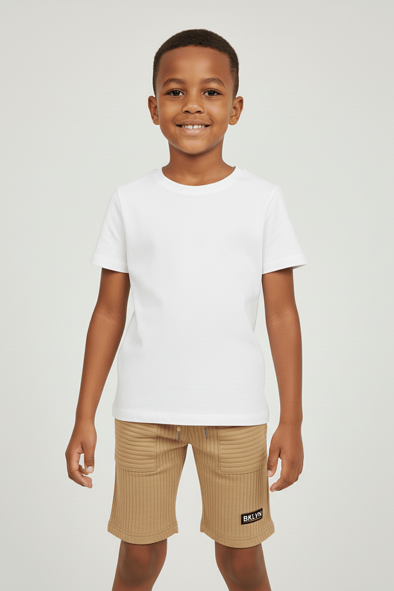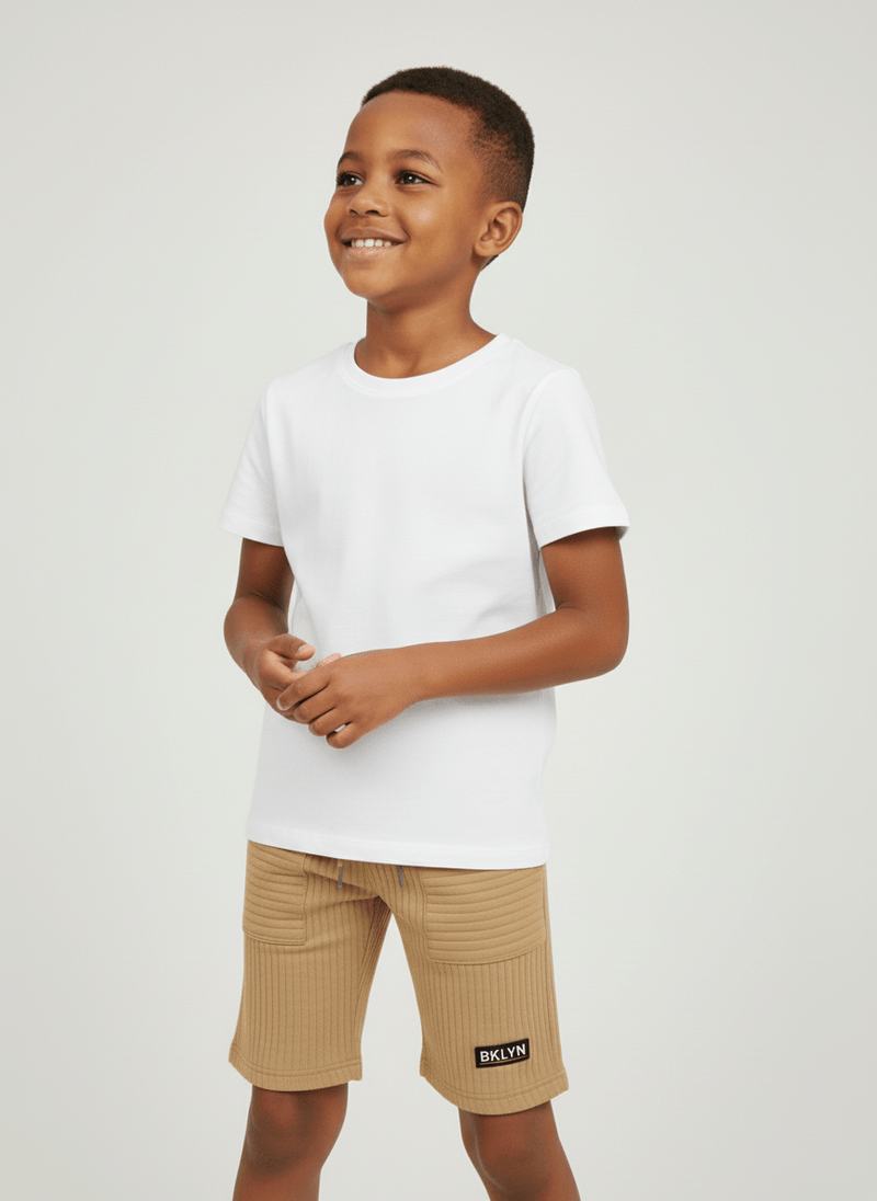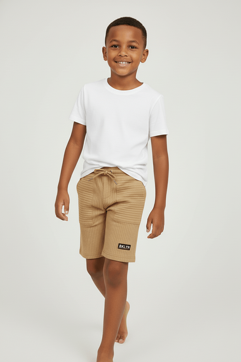 A Bermuda Infantil Moletom Canelada Areia com Patch BKLYN Caedu garante conforto e estilo. Feita em moletom canelado macio, oferece liberdade de movimento para todas as brincadeiras. Com bolsos laterais e o patch BKLYN, é a escolha ideal para a moda infantil despojada.