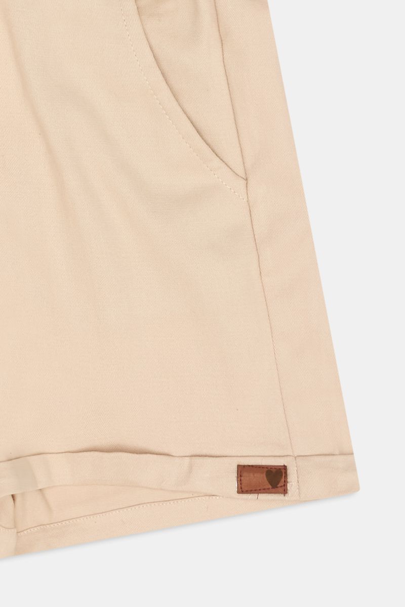 Este shorts é ideal para diversas ocasiões: brincadeiras no parque, passeios em família, festas de aniversário ou um dia relaxante em casa. A versatilidade do bege claro permite combinações fáceis para qualquer aventura infantil.