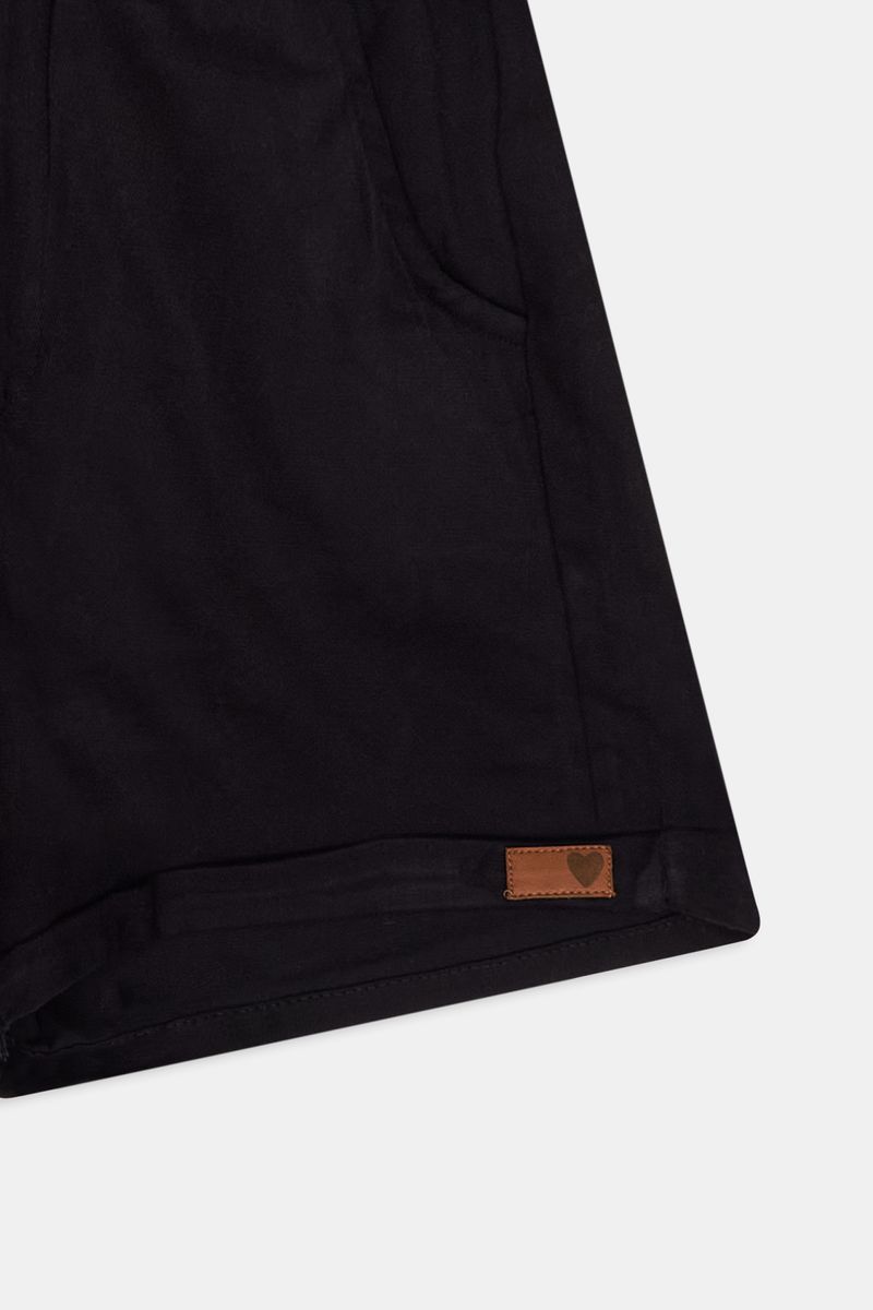 Descubra o Shorts Infantil Preto Caedu, a escolha perfeita para um look moderno e confortável. Confeccionado em sarja com 95% algodão e 5% elastano, oferece liberdade de movimento. Com cós alto, botões dourados e bolsos funcionais, é ideal para as aventuras diárias. Garanta já essa peça versátil da Caedu!