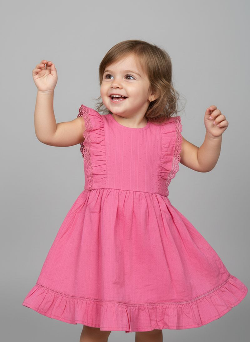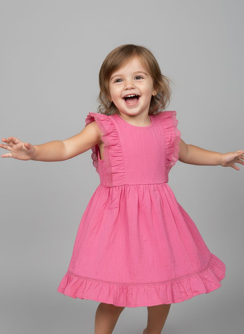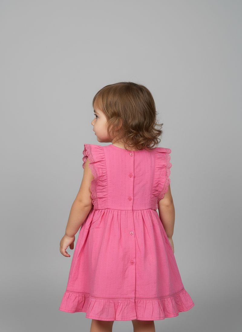 O Vestido Infantil Laise Rosa Médio Caedu oferece conforto e estilo para as pequenas. Com sua composição de 95% cotton, garante maciez. Os babados delicados e a textura em laise criam um visual encantador, perfeito para a moda infantil.