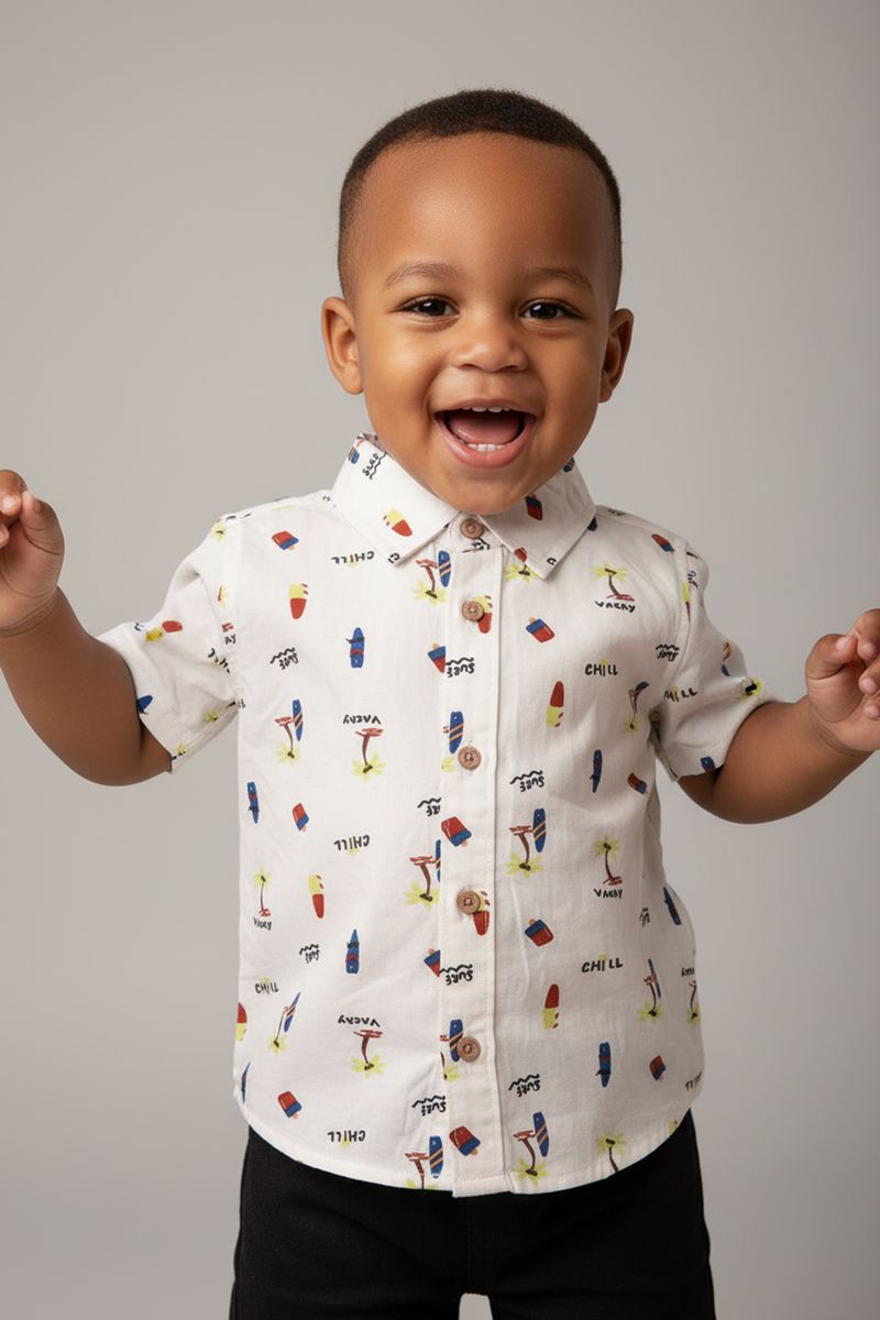 A Camisa Infantil Caedu Manga Curta Estampa Surf Divertida Off-White é a peça ideal para os pequenos. Em 100% viscose, oferece conforto e leveza. Com estampa vibrante de surf, pranchas e coqueiros, garante um visual divertido e cheio de estilo.