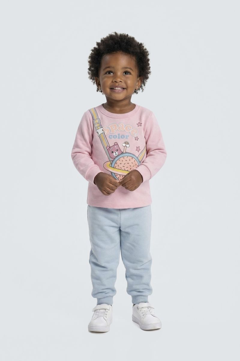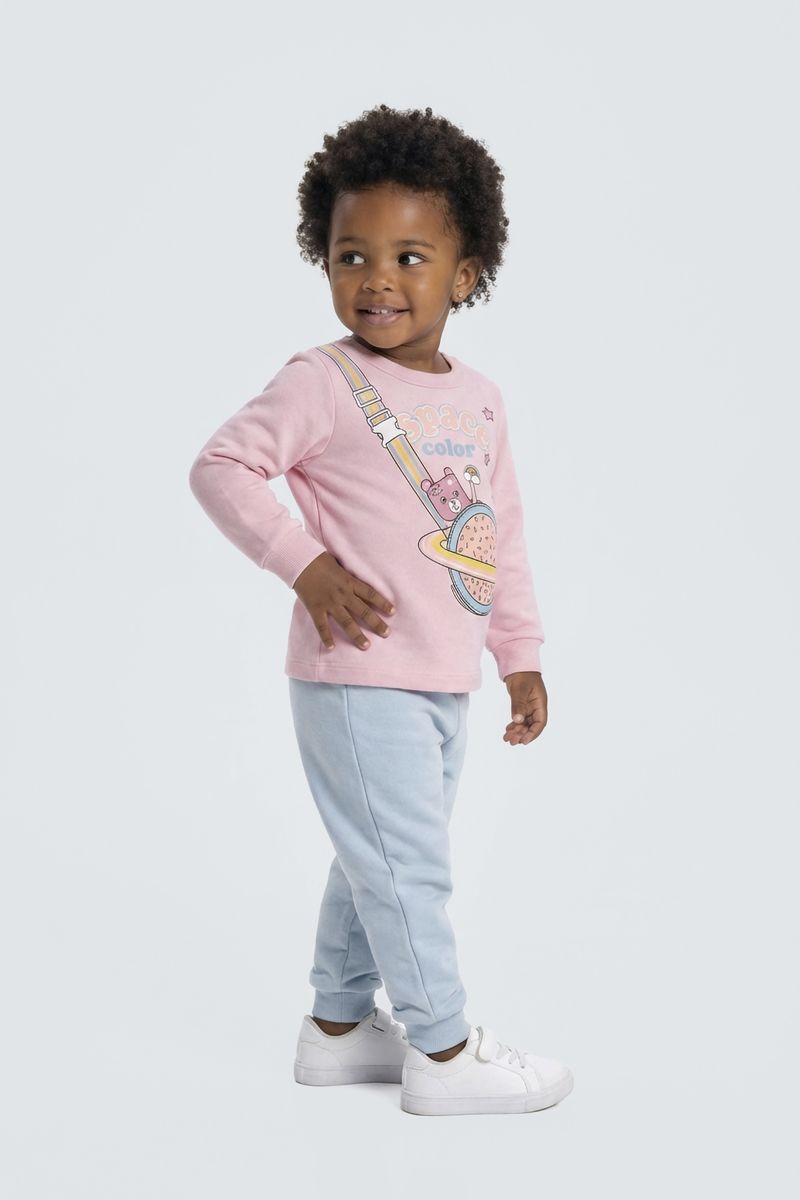 Prepare sua pequena para aventuras intergalácticas com o Moletom Infantil Caedu Rosa Claro 'Space Color'. Feito em moletom com felpa, oferece conforto e maciez. Sua estampa vibrante de urso astronauta e planeta donut traz um toque divertido e estiloso para o dia a dia da sua criança. Uma roupa infantil perfeita para explorar o mundo com alegria!